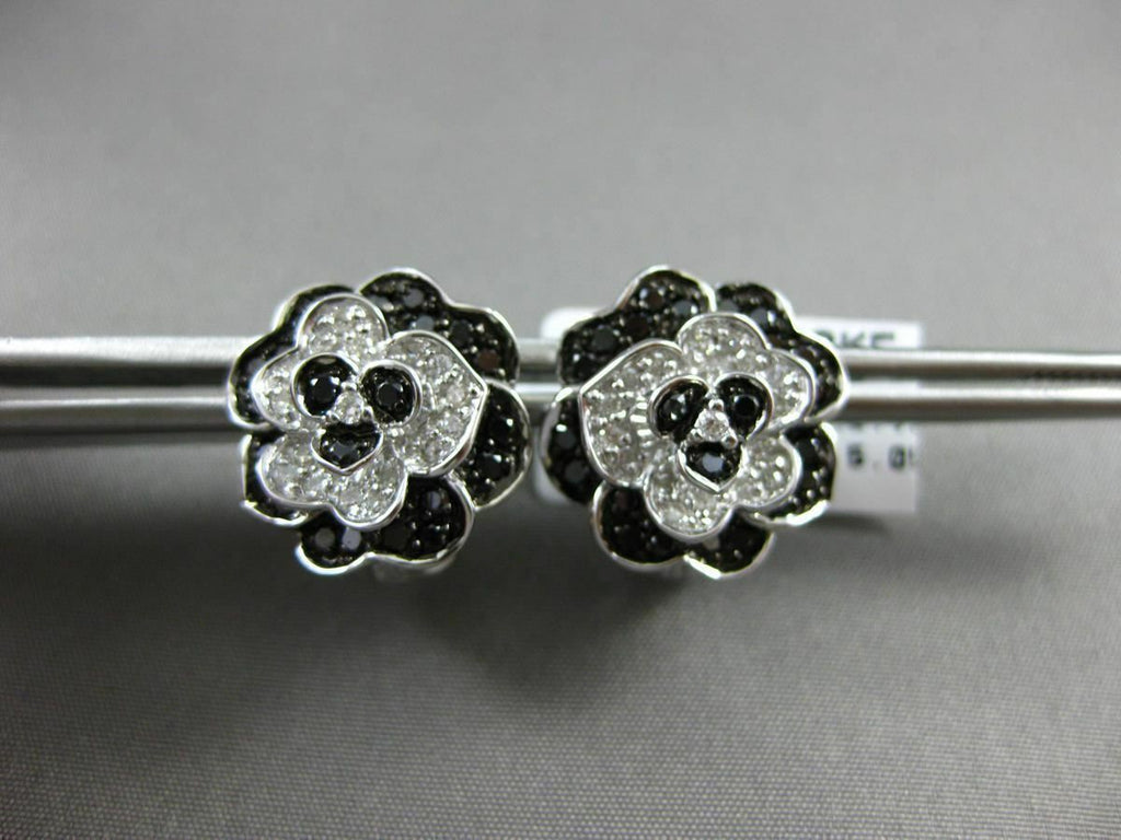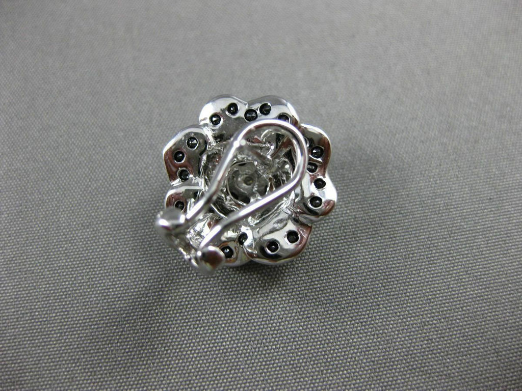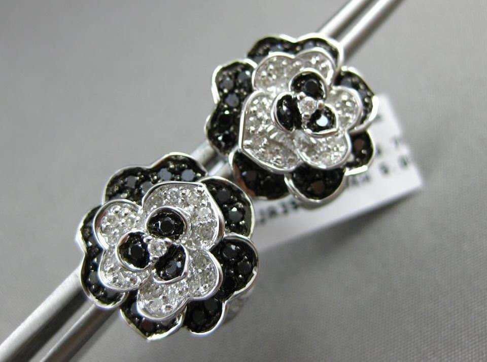 ESTATE WIDE 1CT WHITE & BLACK DIAMOND 14KT WHITE GOLD 3D FLOWER CLIP ON EARRINGS