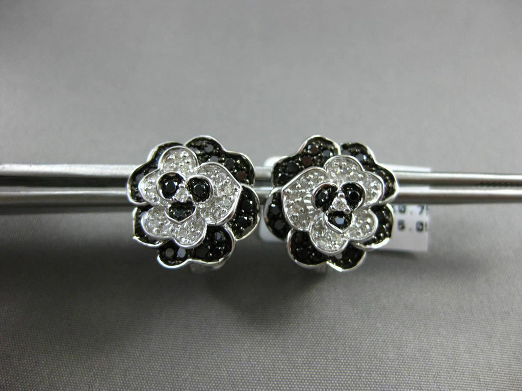 ESTATE WIDE 14KT WHITE GOLD CLIP ON EARRINGS. 3D FLOWER DESIGN. DIAMONDS ARE F/G COLOR, VVS CLARITY. WHITE & BLACK DIAMONDS ARE .75 CARATS. MEASURES 15mm WIDE. WRITTEN APPRAISAL AVAILABLE. COMES IN A PRESENTABLE GIFT BOX