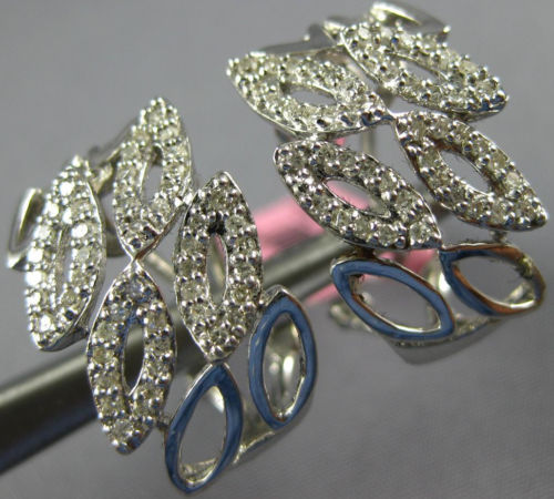ESTATE WIDE 18KT WHITE GOLD CLIP ON EARRINGS. 3D MULTI LEAF UMBRELLA DESIGN. DIAMONDS ARE F/G COLOR, VSSI CLARITY .48 CARATS. MEASURES 12mm X 19mm WIDE. WRITTEN APPRAISAL AVAILABLE. COMES IN A PRESENTABLE GIFT BOX.