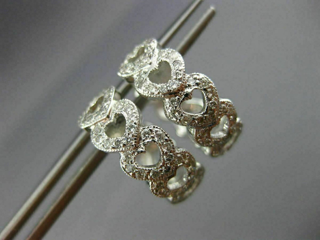 ESTATE WIDE .62CT DIAMOND 14KT WHITE GOLD 3D MULTI HEART LOVE HUGGIE EARRINGS