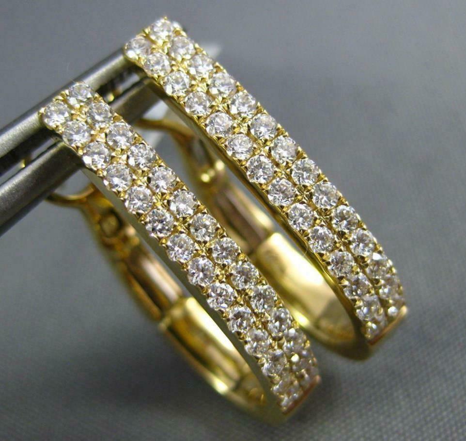 ESTATE WIDE 18KT YELLOW GOLD CLIP ON HANGINGEARRINGS. 3D CLASSIC TWO ROWDESIGN. DIAMONDS ARE F/G COLOR, VSSI CLARITY .67 CARATS.MEASURES 3mm X 21mm X 12mm. WRITTEN APPRAISAL AVAILABLE. COMES IN A PRESENTABLE GIFT BOX.