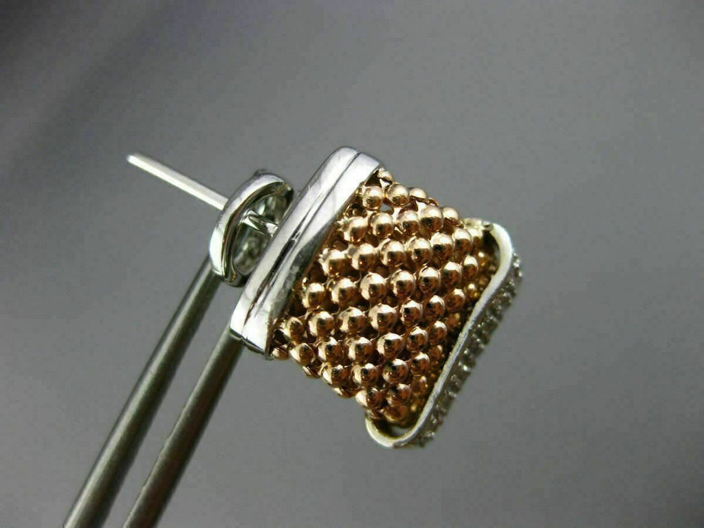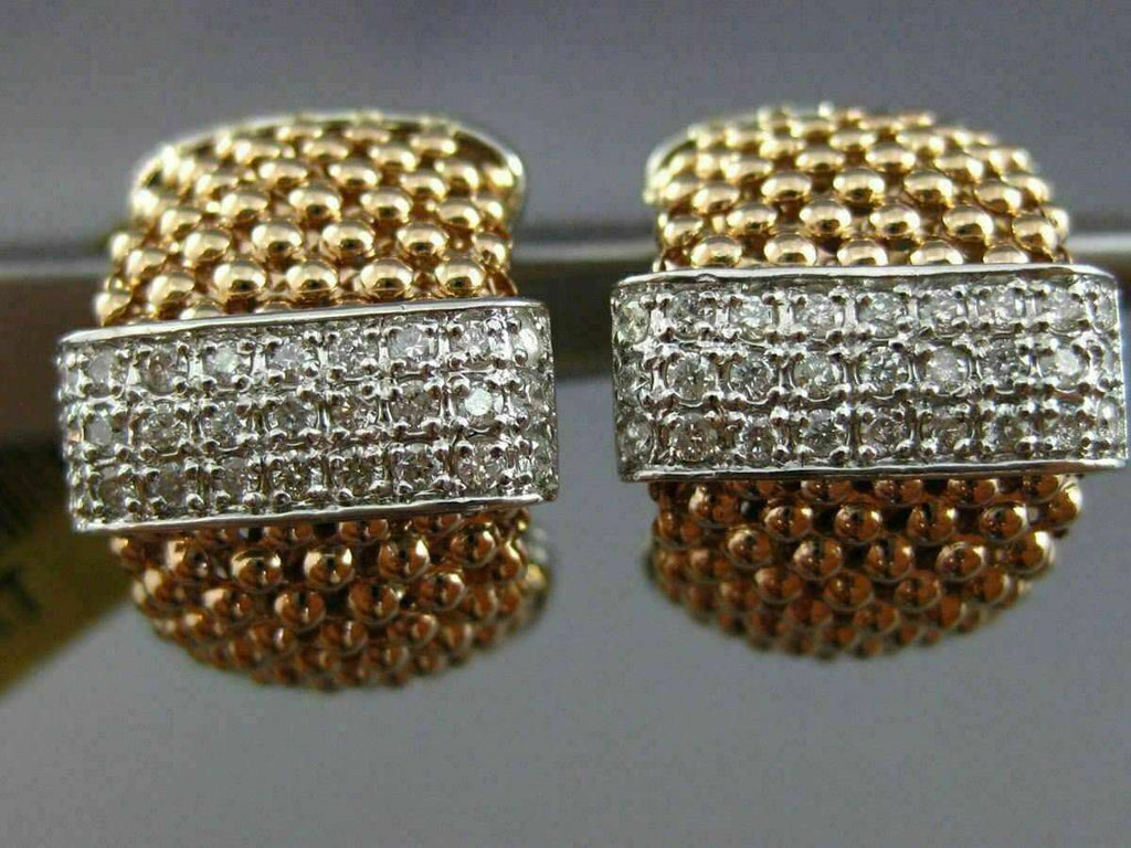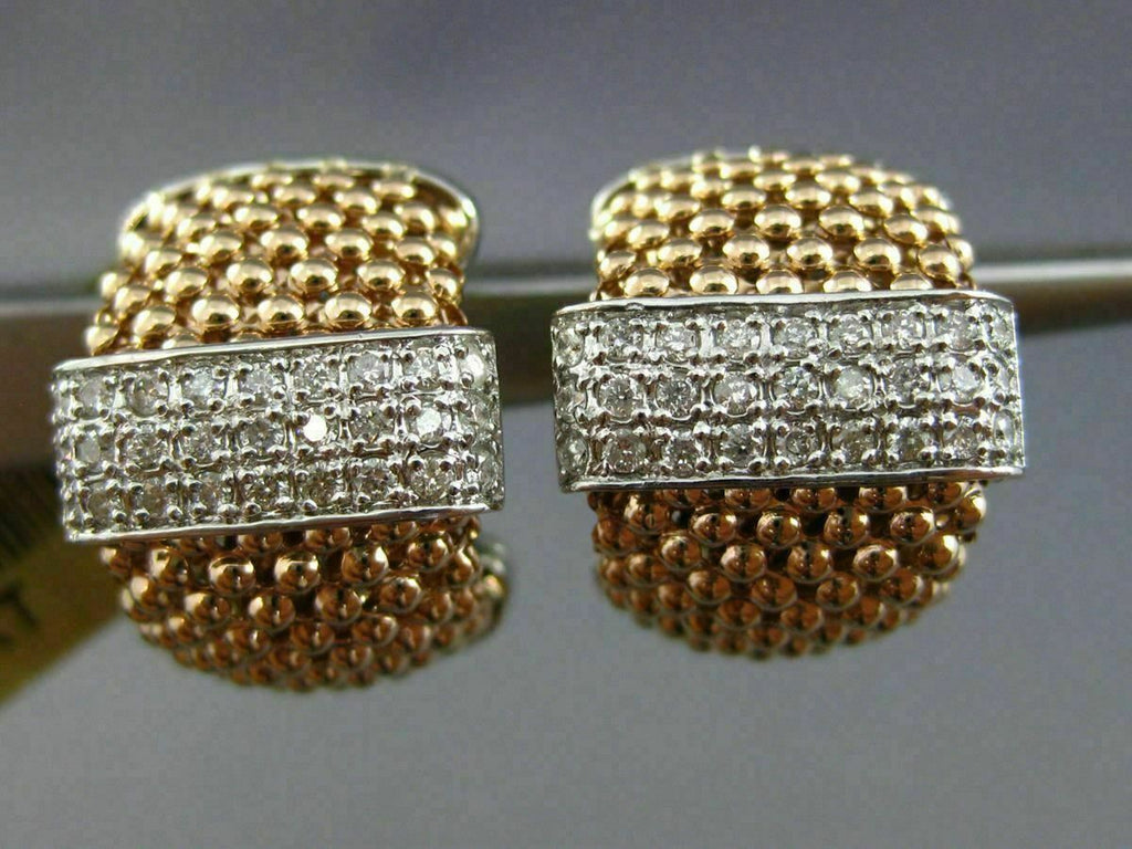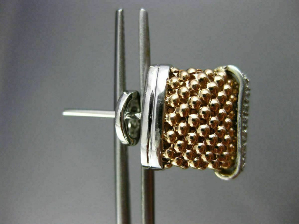 ESTATE WIDE 18KT WHITE & ROSE GOLD EARRINGS. 3D MULTI ROW MESH WOVEN DESIGN. DIAMONDS ARE F/G COLOR, VSSI CLARITY .70 CARATS. MEASURES 19mm X 14mm WIDE. WRITTEN APPRAISAL AVAILABLE. COMES IN A PRESENTABLE GIFT BOX