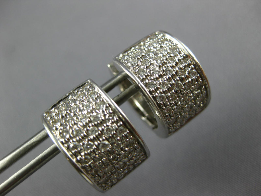 ESTATE WIDE 18KT WHITE GOLD HUGGIEEARRINGS. 3D MULTI ROW CLASSICDESIGN. DIAMONDS ARE F/G COLOR, VVS-VS CLARITY .75CARATS.MEASURES 10mm X 17mm. WRITTEN APPRAISAL AVAILABLE. COMES IN A PRESENTABLE GIFT BOX.