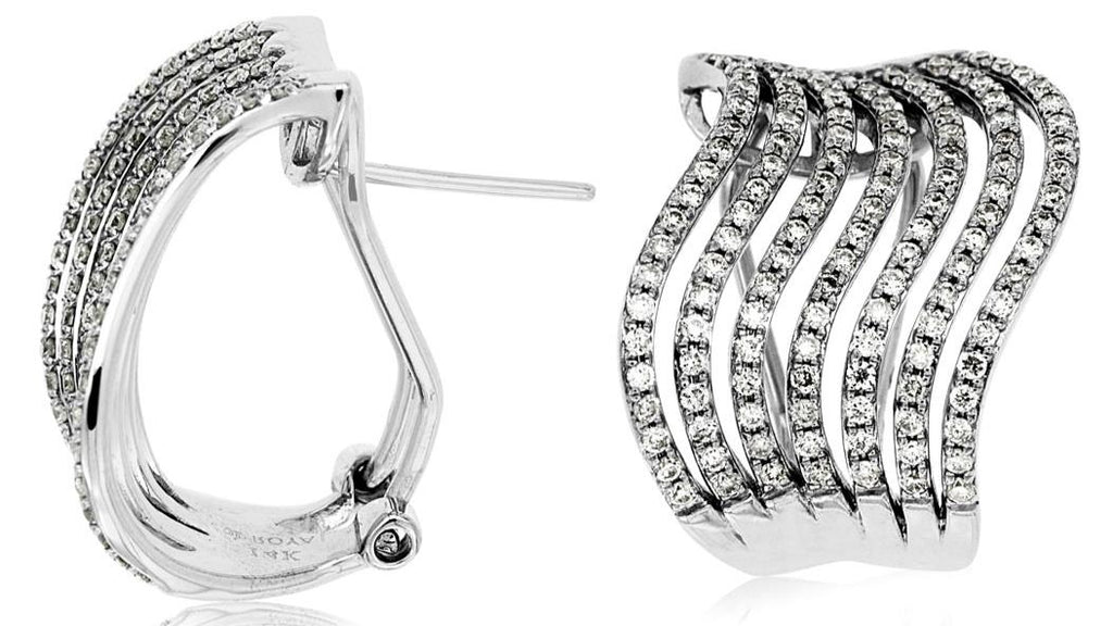 ESTATE WIDE 14KT WHITE GOLD CLIP ON HANGINGEARRINGS. 3D MULTI WAVEDESIGN. DIAMONDS ARE F/G COLOR, VSSI CLARITY .98 CARATS. WRITTEN APPRAISAL AVAILABLE. COMES IN A PRESENTABLE GIFT BOX.