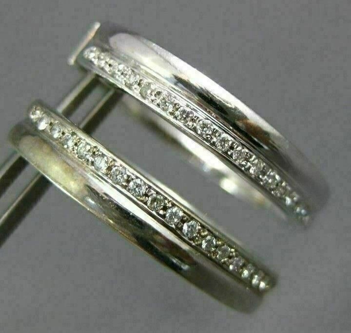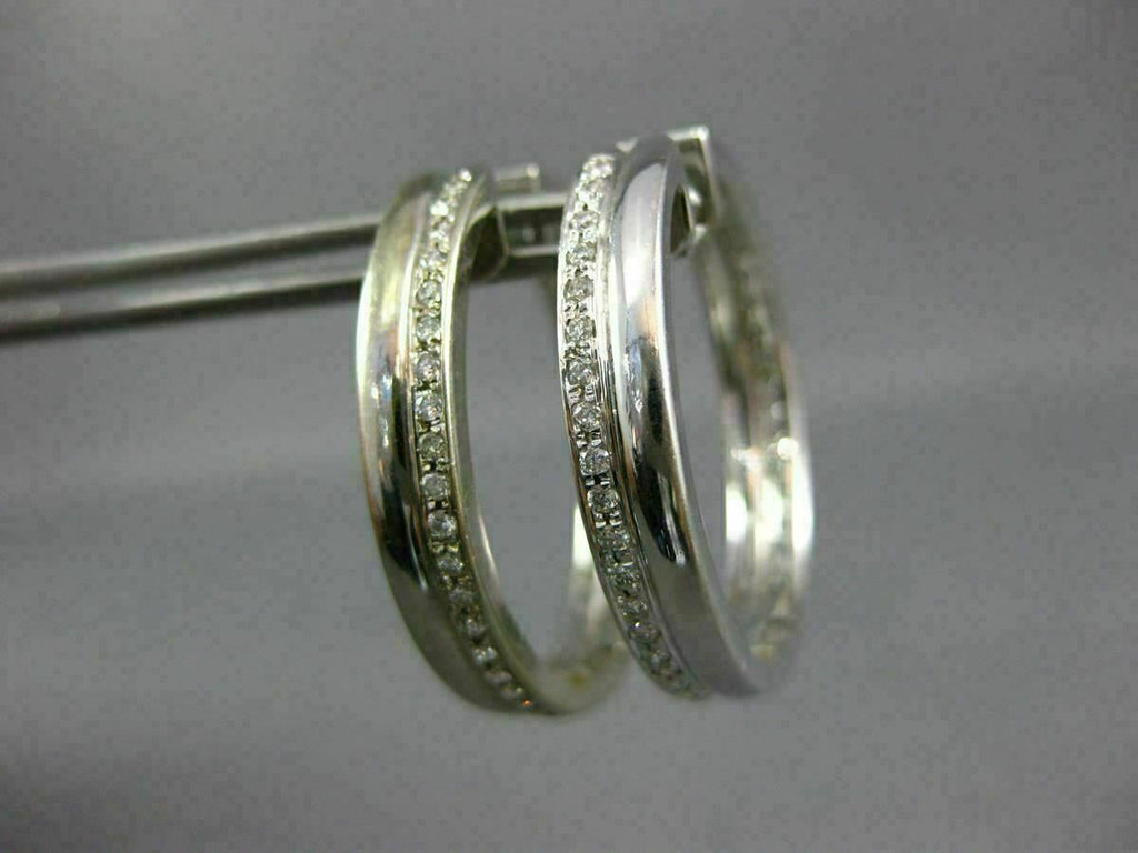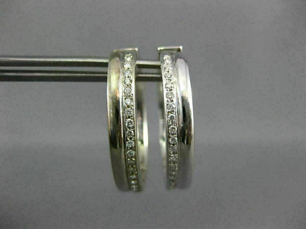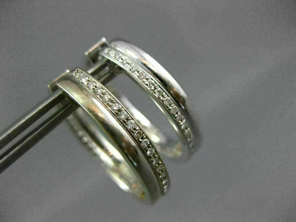 ESTATE WIDE & LARGE .46CT DIAMOND 14K WHITE GOLD 2 ROW SHINY HOOP EARRINGS #1440