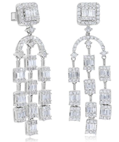 EXTRA LARGE 1.94CT DIAMOND 18KT WHITE GOLD ROUND & BAGUETTE CHANDELIER EARRINGS