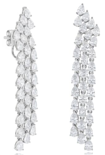 EXTRA LARGE 10.23CT DIAMOND 18K WHITE GOLD PEAR SHAPE MULTI ROW HANGING EARRINGS