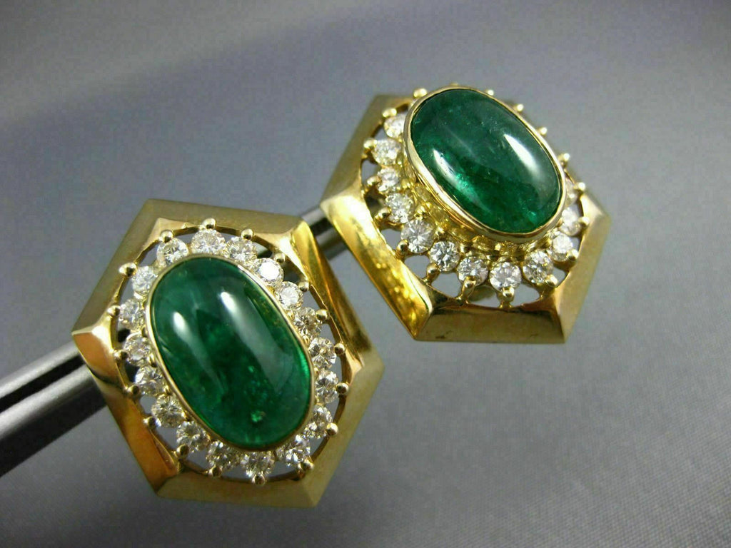 EXTRA LARGE 11.90CT DIAMOND & AAA EMERALDS 14K YELLOW GOLD OVAL CLIP ON EARRINGS