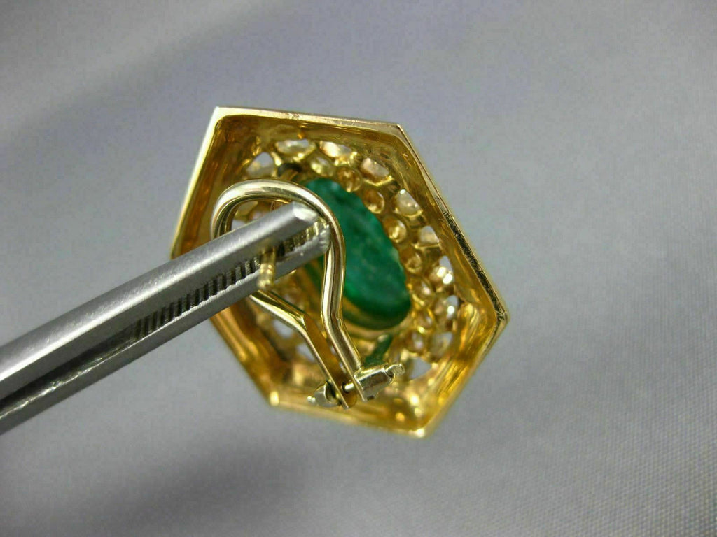 EXTRA LARGE 14KT YELLOW GOLD CLIP ON EARRINGS. 3D OVAL HEXAGON DESIGN. DIAMONDS ARE F/G COLOR, VS CLARITY 1.84 CARATS. AAA EMERALDS ARE 10.06 CARATS. MEASURES 26mm X 18mm. WRITTEN APPRAISAL AVAILABLE. COMES IN A PRESENTABLE GIFT BOX.