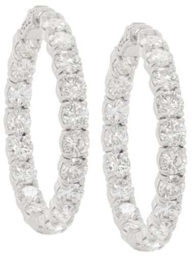 EXTRA LARGE 18KT WHITE GOLD HOOP HANGING EARRINGS. 3D SHARED PRONG INSIDE OUT DESIGN. ROUND DIAMONDS ARE G/H COLOR, VSSI CLARITY 16.5 CARATS. WRITTEN APPRAISAL AVAILABLE. COMES IN A PRESENTABLE GIFT BOX.