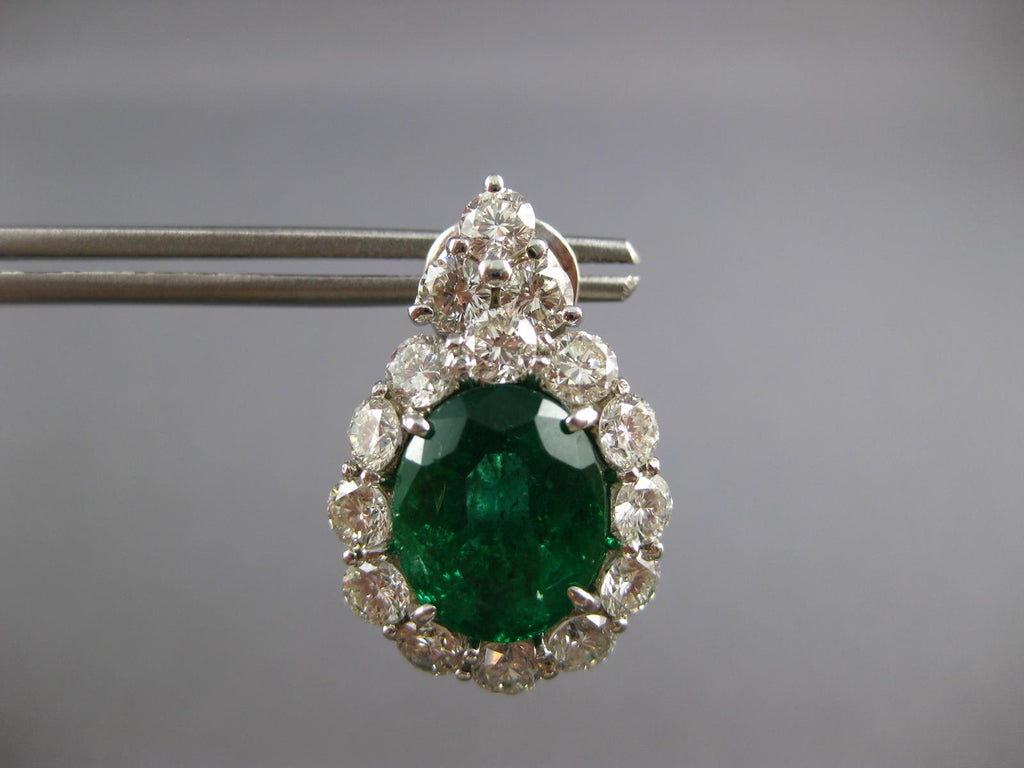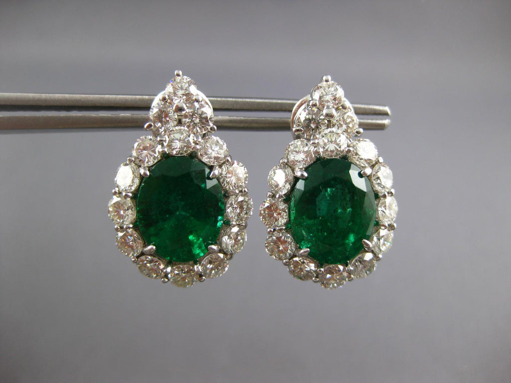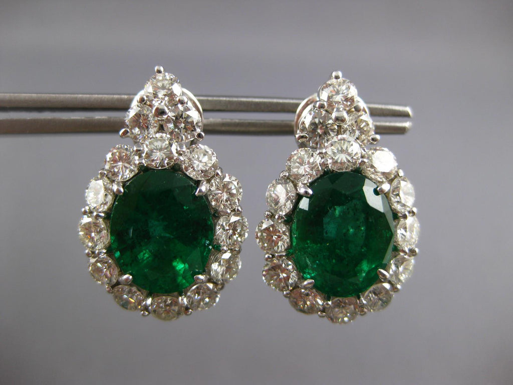 EXTRA LARGE PLATINUM CLIP ON HANGING EARRINGS. 3D FLOWER DESIGN. ROUND DIAMONDS ARE F/G COLOR, VSSI CLARITY 6.0 CARATS. AAA OVAL EMERALDS ARE 11.0 CARATS. MEASURES 25mm X 16mm. WRITTEN APPRAISAL AVAILABLE. COMES IN A PRESENTABLE GIFT BOX.