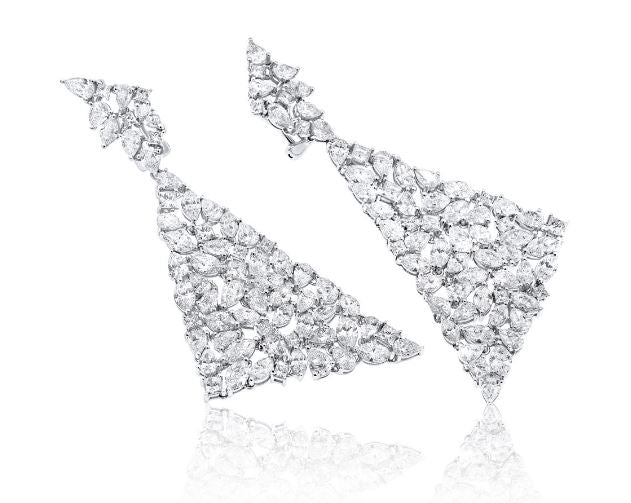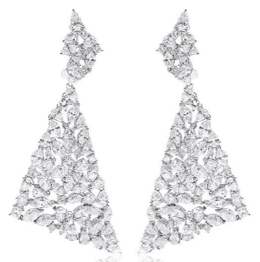 EXTRA LARGE 19.23CT DIAMOND 18KT WHITE GOLD CLUSTER TRIANGULAR HANGING EARRINGS