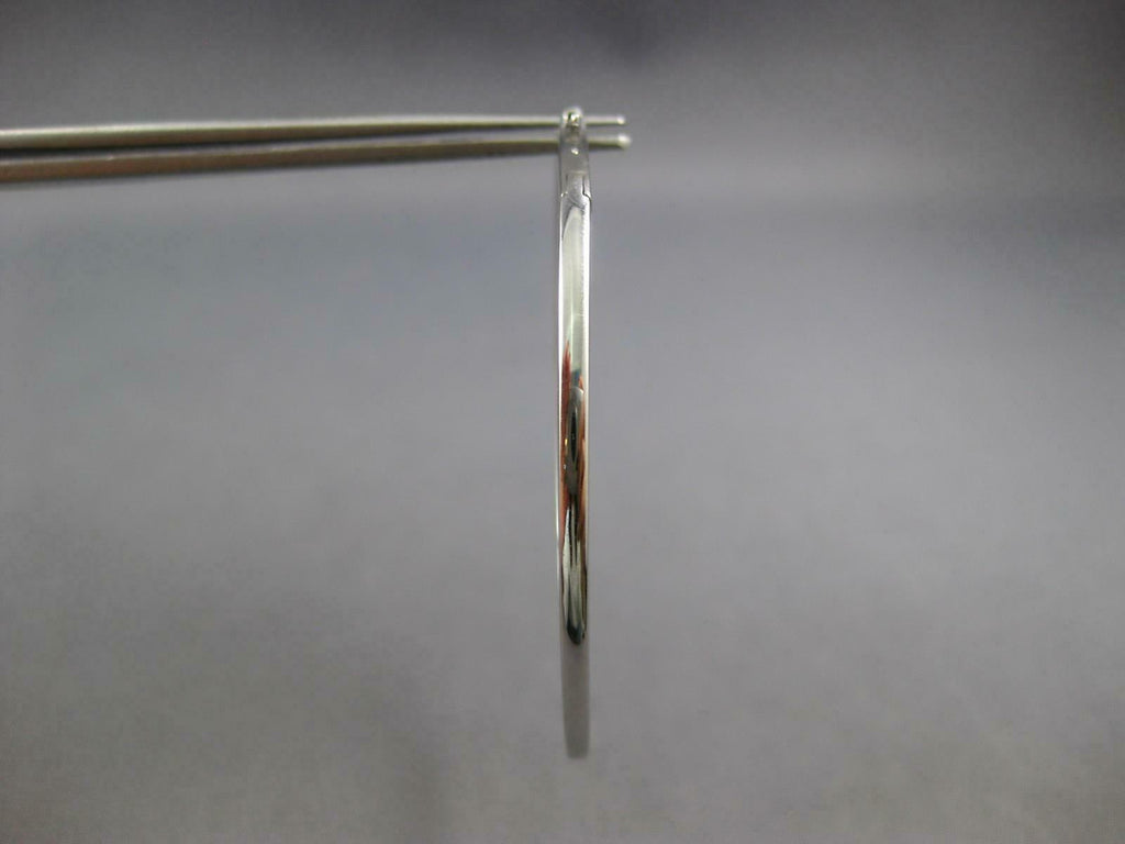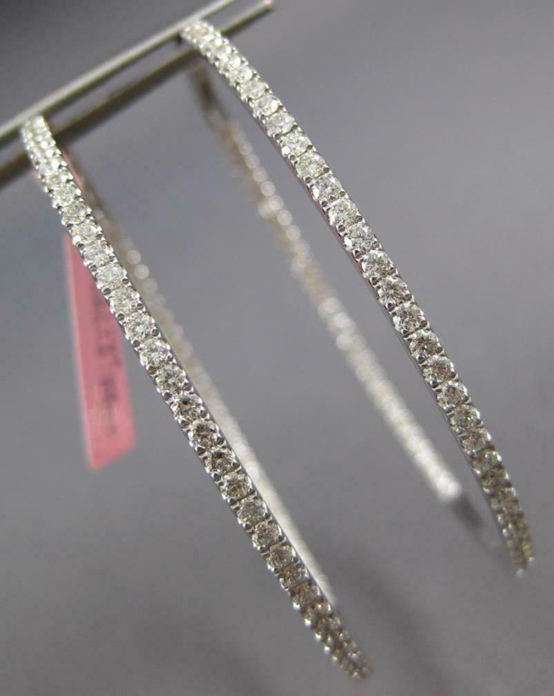 EXTRA LARGE 14KT WHITE GOLD HOOP HANGING EARRINGS. 3D CLASSIC INSIDE OUT DESIGN. DIAMONDS ARE F/G COLOR, VSSI CLARITY 2.30 CARATS. MEASURES 49MM X 2MM. WRITTEN APPRAISAL AVAILABLE. COMES IN A PRESENTABLE GIFT BOX.
