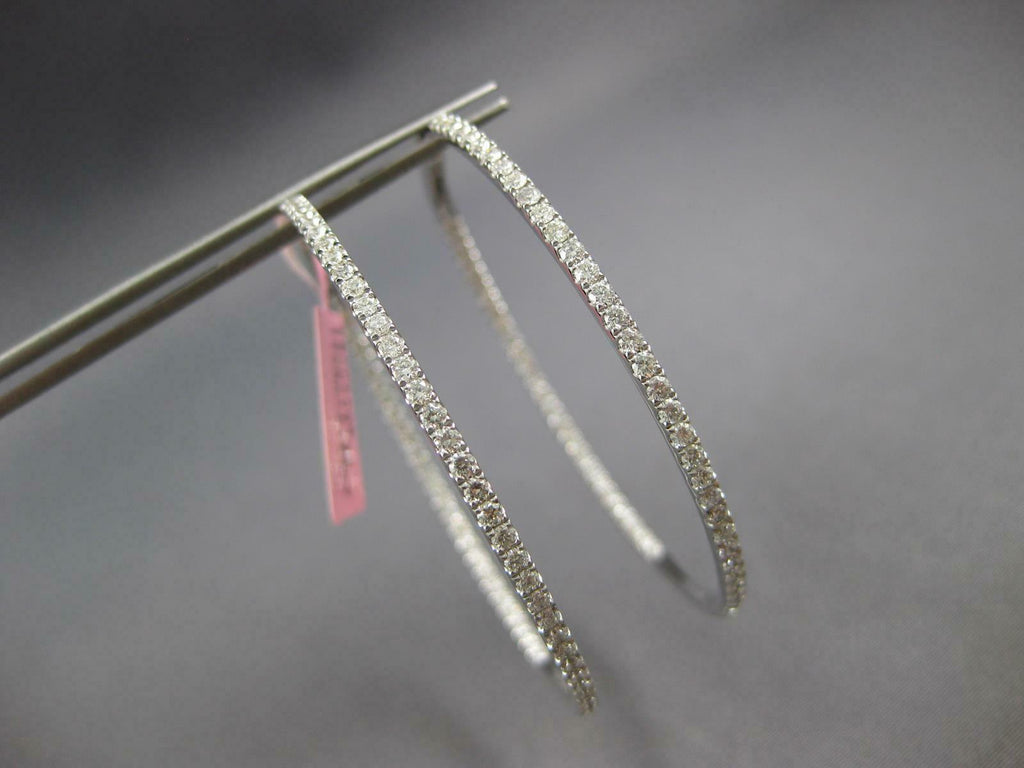 EXTRA LARGE 2.30CT DIAMOND 14KT WHITE GOLD 3D INSIDE OUT HOOP HANGING EARRINGS