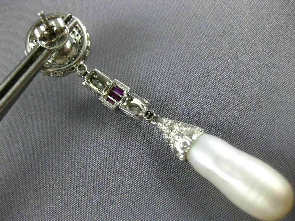 EXTRA LARGE 2.58CT DIAMOND AAA RUBY & SOUTH SEA PEARL 14KT WHITE GOLD EARRINGS