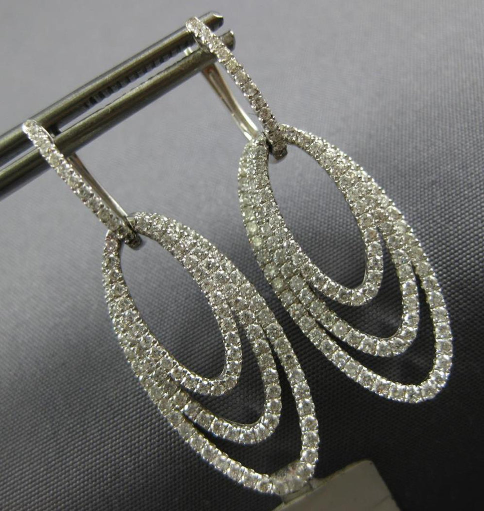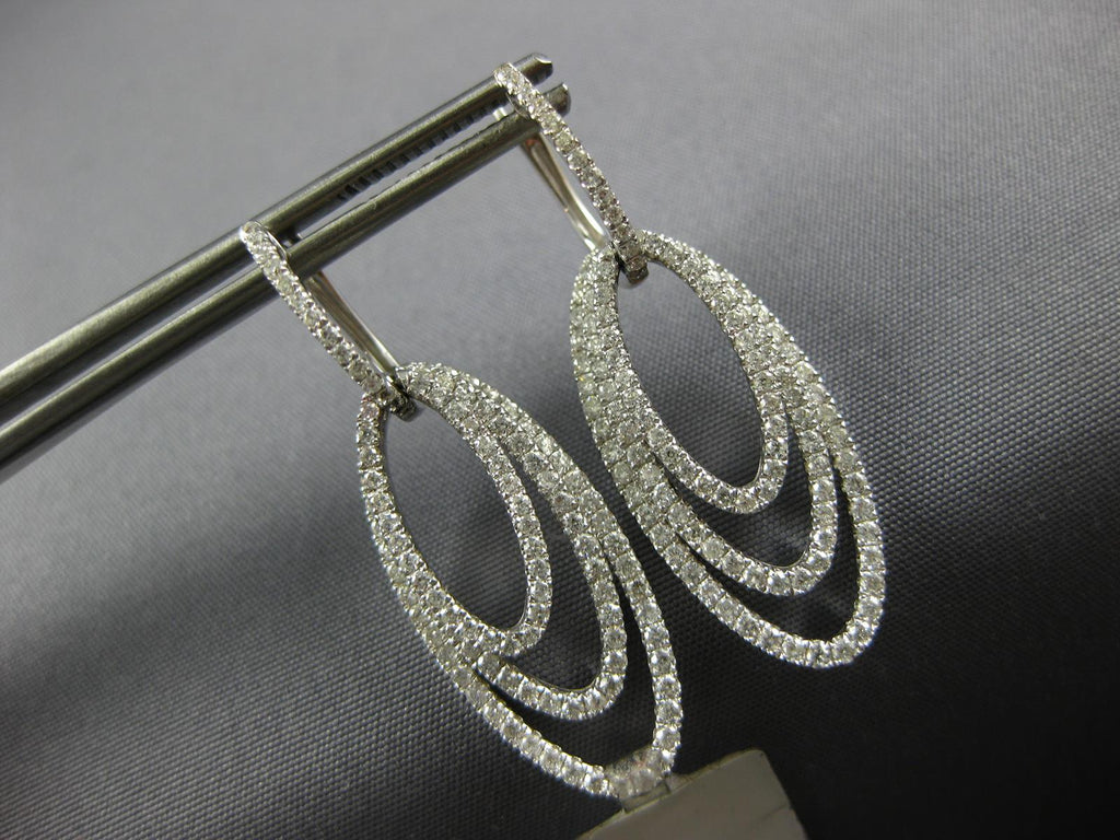 EXTRA LARGE 14KT WHITE GOLD LEVERBACK HANGING EARRINGS. 3D DOUBLE OVAL TEAR DROP DESIGN. DIAMONDS ARE F/G COLOR, VSSI CLARITY 2.0 CARATS. MEASURES 48mm X 18mm. WRITTEN APPRAISAL AVAILABLE. COMES IN A PRESENTABLE GIFT BOX.