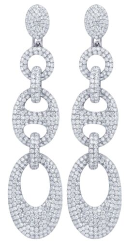 EXTRA LARGE 20CT DIAMOND 18K WHITE GOLD 3D MULTI ROW CHANDELIER HANGING EARRINGS