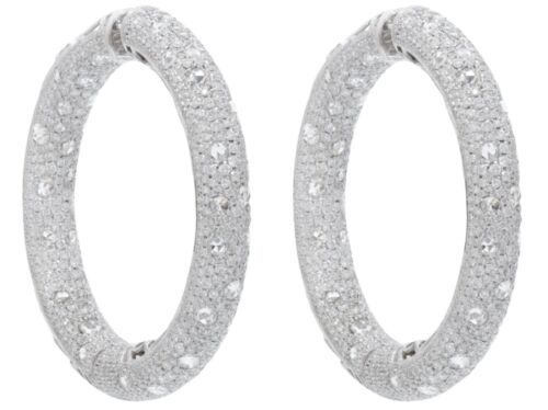 EXTRA LARGE 27.52CT DIAMOND 18KT WHITE GOLD MULTI ROW INSIDE OUT HOOP EARRINGS