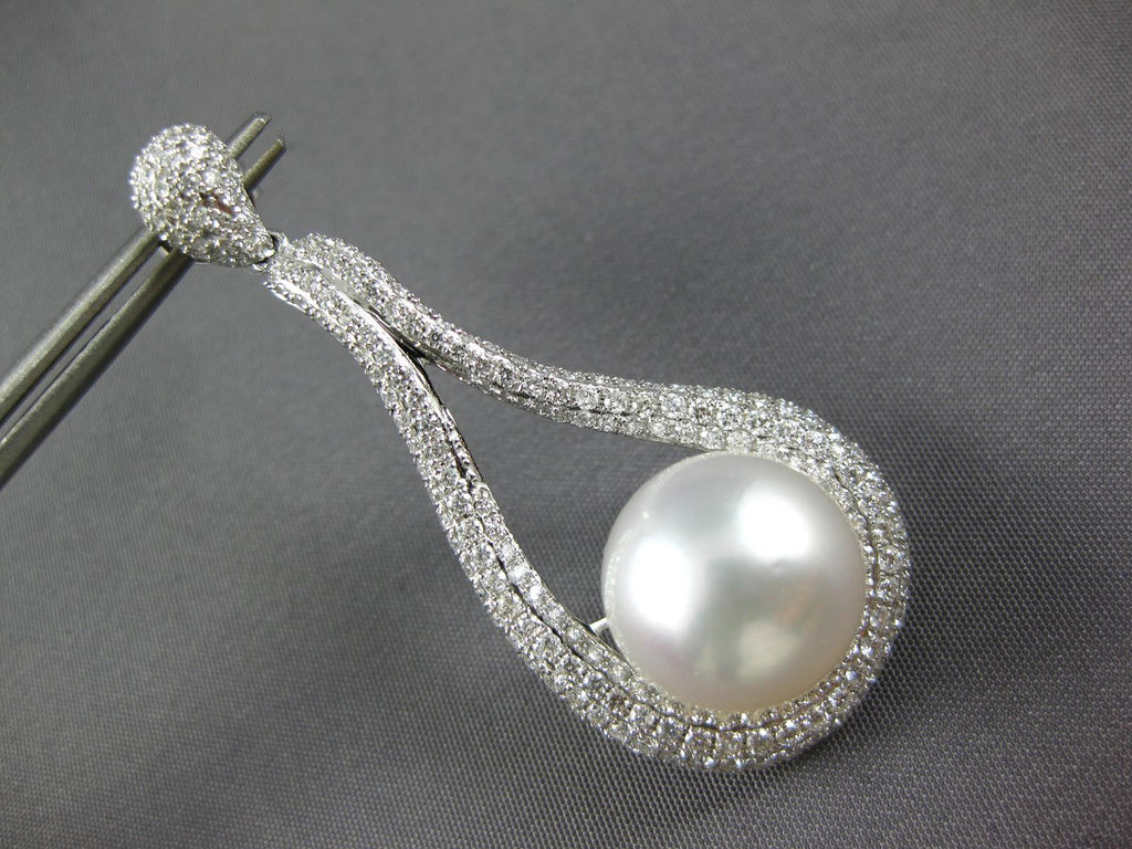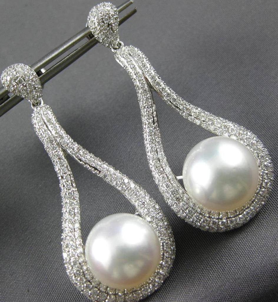 EXTRA LARGE 3.45CT DIAMOND & AAA SOUTH SEA PEARL 18KT WHITE GOLD 3D EARRINGS