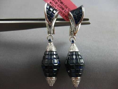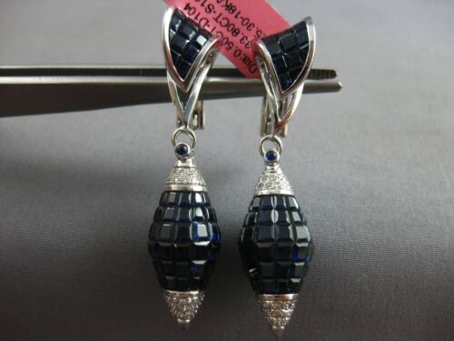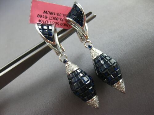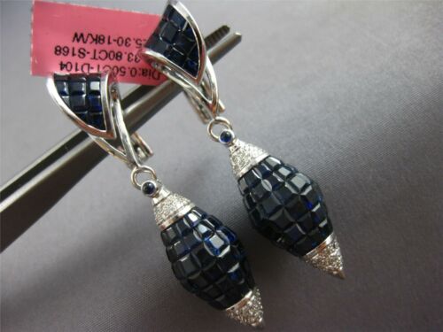 EXTRA LARGE 18KT WHITE GOLD CLIP ON COCKTAIL EARRINGS. 3D INVISIBLE TEAR DROP DESIGN. ROUND DIAMONDS ARE F/G COLOR, VSSI CLARITY .50 CARATS. AAA PRINCESS CUT SAPPHIRES ARE 33.8 CARATS. MEASURES 51mm X 12mm. WRITTEN APPRAISAL AVAILABLE. COMES IN A PRESENTABLE GIFT BOX.