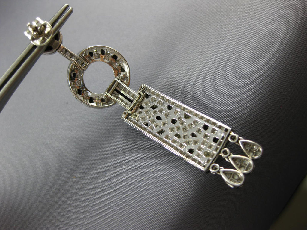 EXTRA LARGE 4.5CT DIAMOND & BLACK ENAMEL 18KT WHITE GOLD 3D HANGING EARRINGS