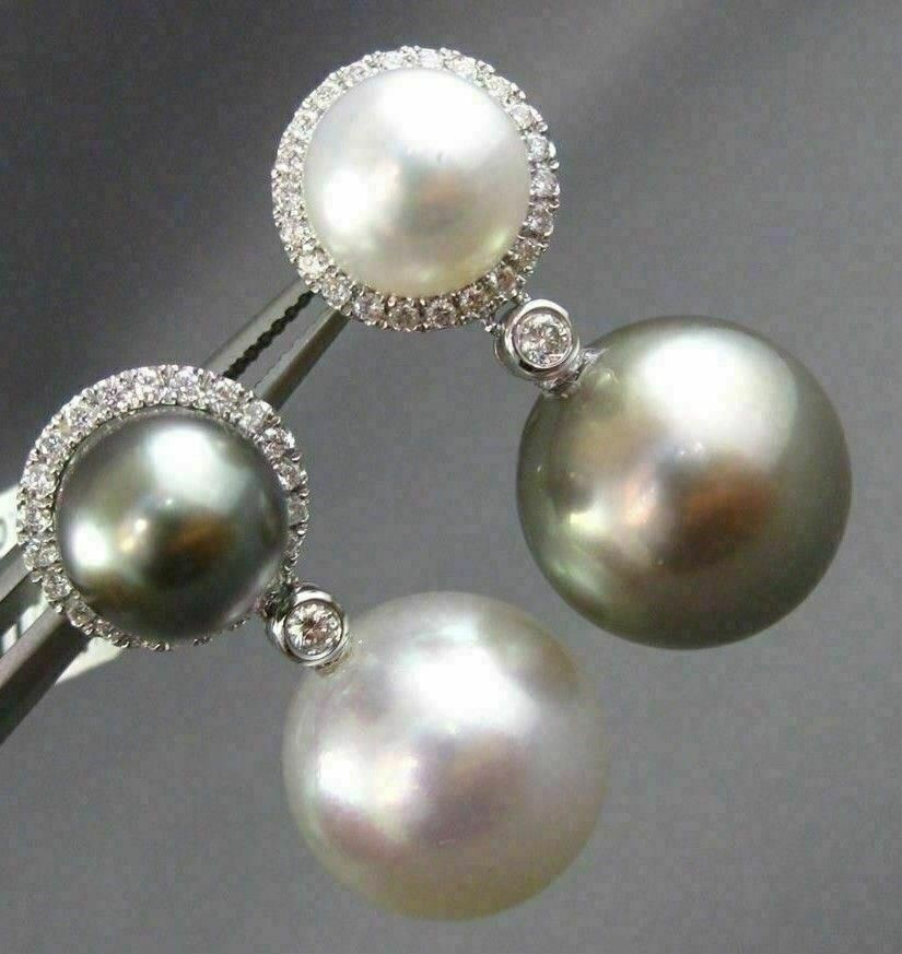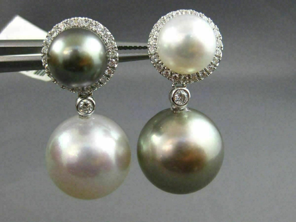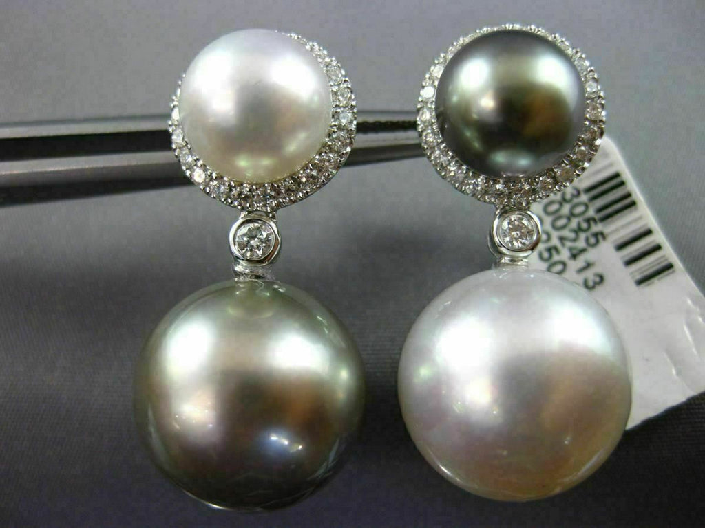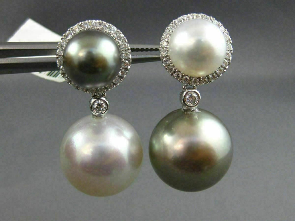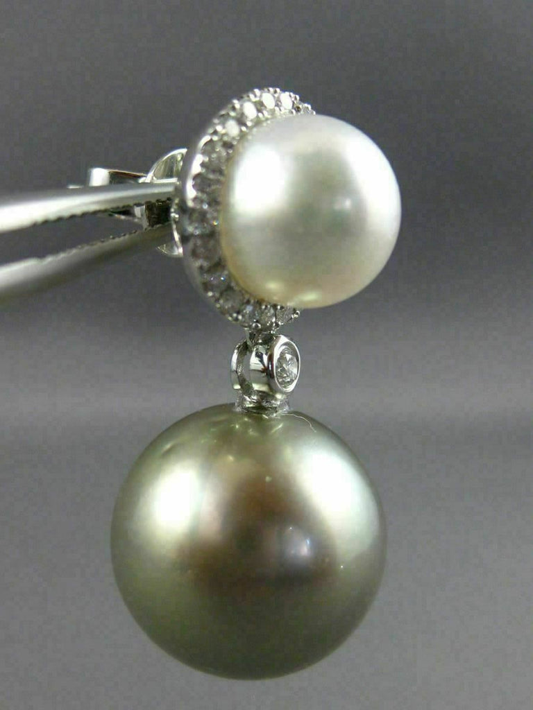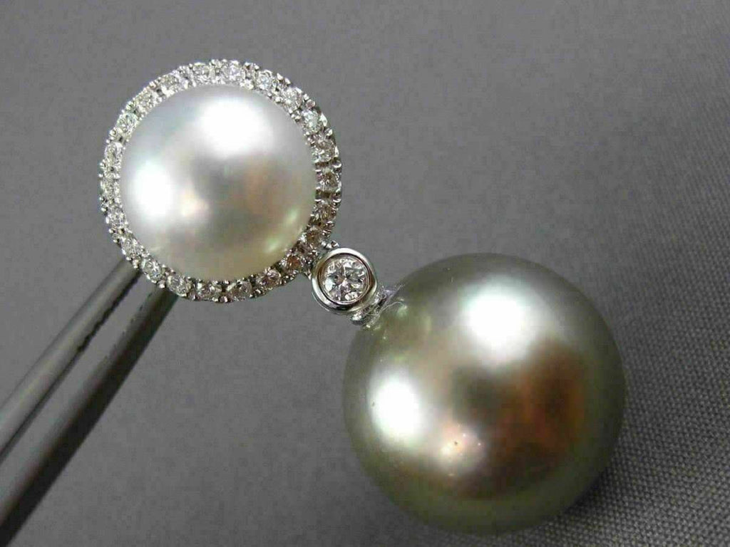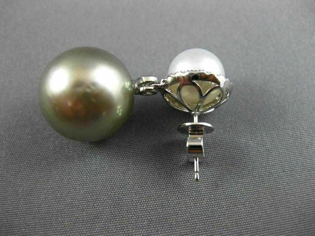 EXTRA LARGE .45CT DIAMOND & SOUTH SEA TAHITIAN PEARL 18KT WHITE GOLD 3D EARRINGS