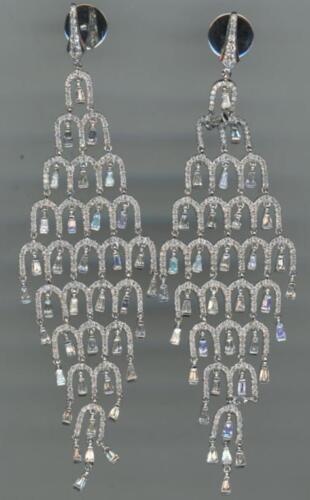 EXTRA LARGE 5.51CT DIAMOND 18KT WHITE GOLD ROUND & BAGUETTE FUN HANGING EARRINGS