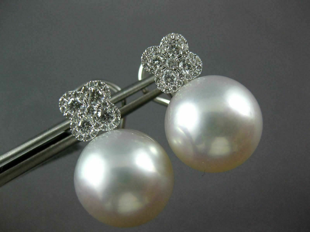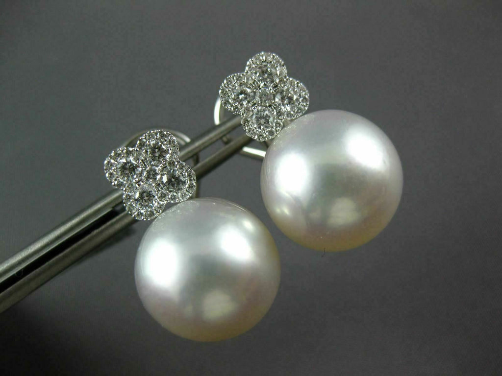 EXTRA LARGE18KT WHITEGOLD CLIP ONEARRINGS. 3D FOUR LEAF CLOVER FLOWERDESIGN.DIAMONDS ARE F/G COLOR, VSSI CLARITY .50 CARATS.FEATURES AAA SOUTH SEAPEARL.MEASURES 20mm X 13mm. WRITTEN APPRAISAL AVAILABLE. COMES IN A PRESENTABLE GIFT BOX.
