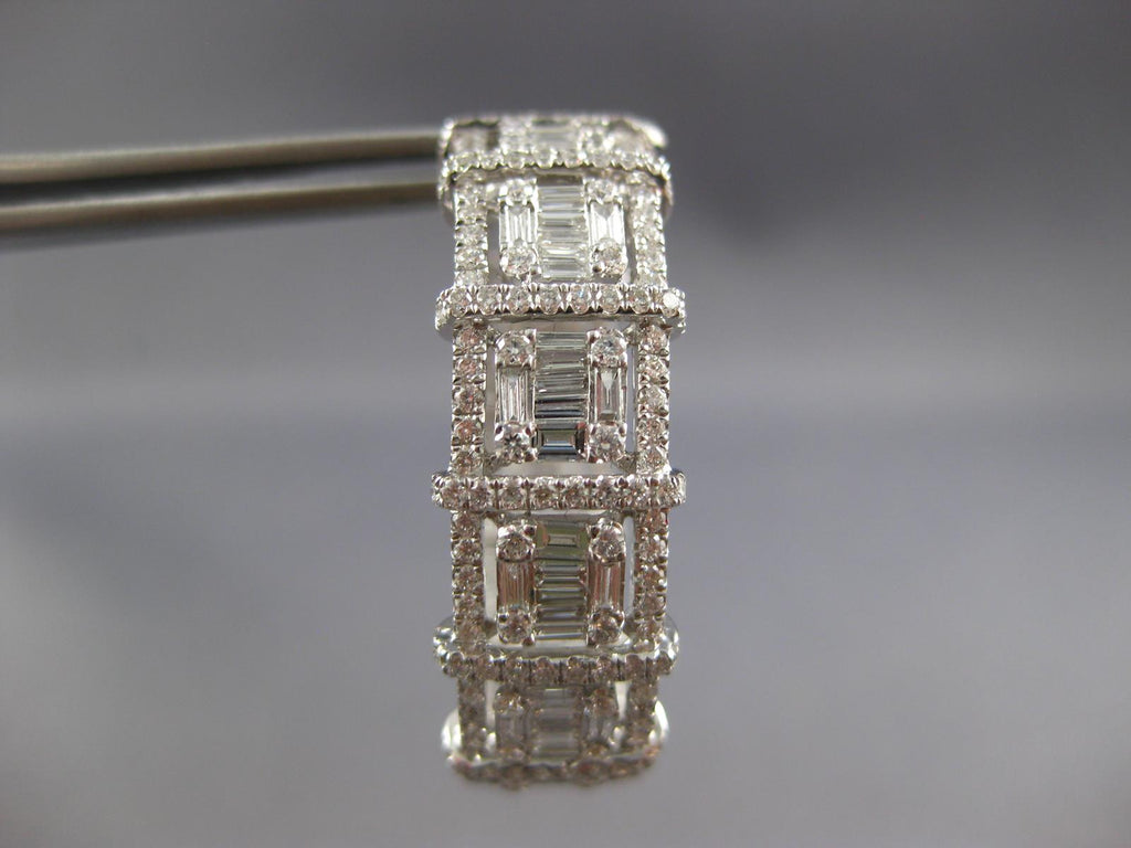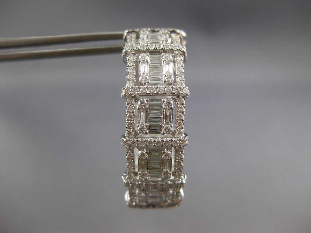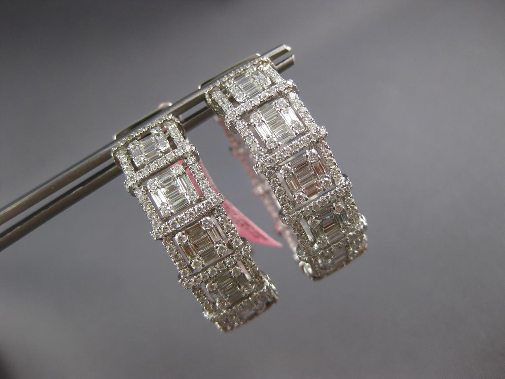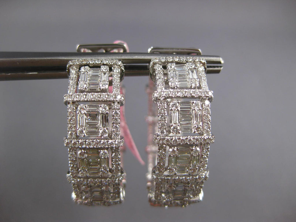 EXTRA LARGE 7.12CT DIAMOND 18K WHITE GOLD ROUND & BAGUETTE HOOP HANGING EARRINGS