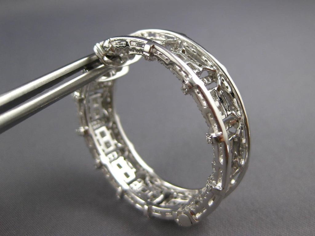 EXTRA LARGE 18KT WHITE GOLD HOOP HANGING EARRINGS. 3D INVISIBLE SQUARE INSIDE OUT CLASSIC DESIGN. DIAMONDS ARE F/G COLOR, VS CLARITY. ROUND DIAMONDS ARE 4.17 CARATS. BAGUETTE DIAMONDS ARE 2.95 CARATS. MEASURES 34mm X 33mm X 9mm. WRITTEN APPRAISAL AVAILABLE. COMES IN A PRESENTABLE GIFT BOX.