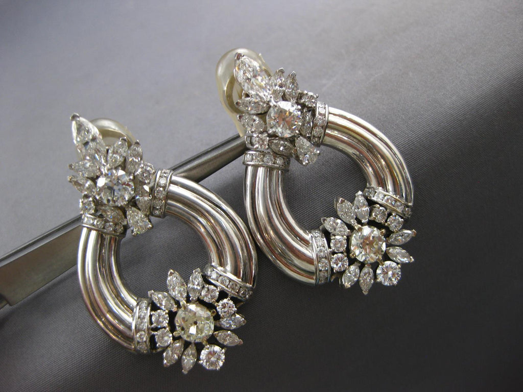 EXTRA LARGE 7.60CT DIAMOND 14KT WHITE GOLD 3D TEAR DROP CLIP ON HANGING EARRINGS