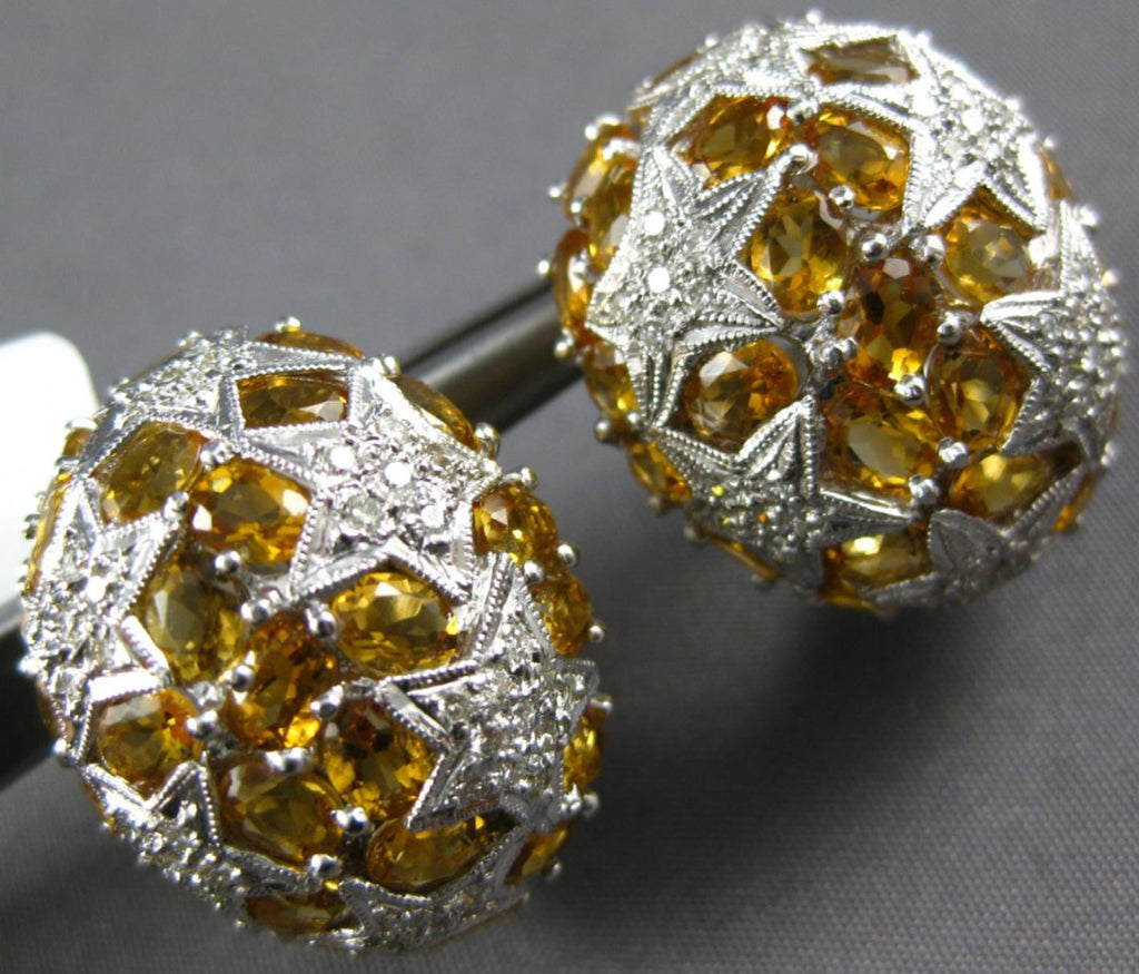 EXTRA LARGE 18KT WHITE GOLD CLIP ON HANGING EARRINGS. 3D MULTI STAR SEMI DOME DESIGN. DIAMONDS ARE F/G COLOR, VSSI CLARITY 3.18 CARATS. AAA ORANGE CITRINES ARE 5.20 CARATS. MEASURES 22mm X 18mm. WRITTEN APPRAISAL AVAILABLE. COMES IN A PRESENTABLE GIFT BOX.