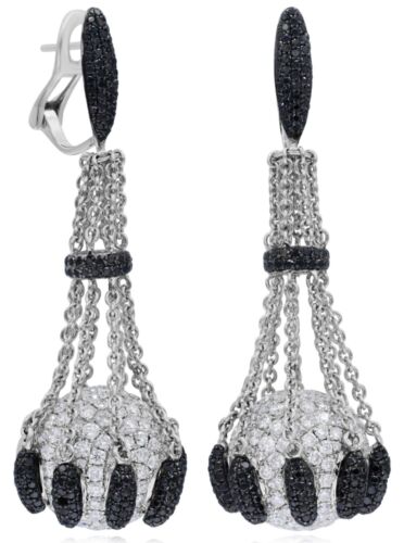 EXTRA LARGE 9.60CT WHITE & BLACK DIAMOND 18KT WHITE GOLD 3D MULTI ROW EARRINGS