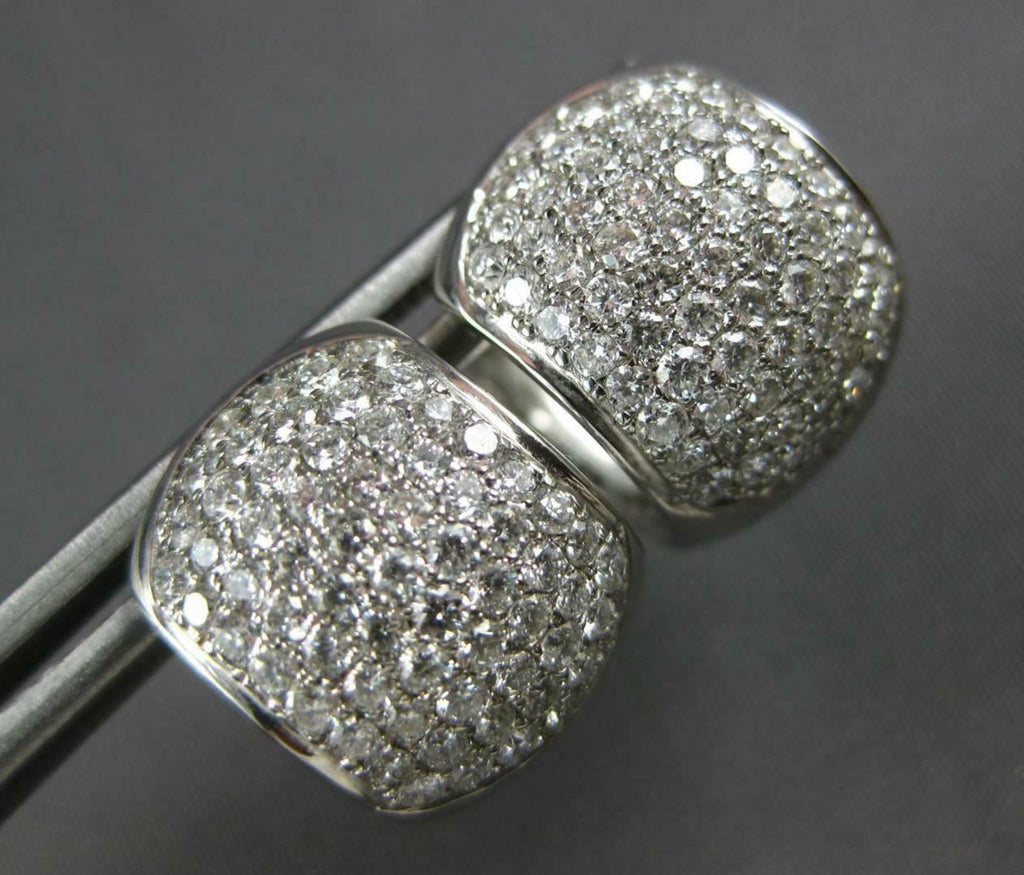 EXTRA WIDE 14KT WHITE GOLD HUGGIE HANGING EARRINGS. 3D MULTI ROW DESIGN. DIAMONDS ARE F/G COLOR, VSSI CLARITY 1.63 CARATS. MEASURES 16MM X 11MM. WRITTEN APPRAISAL AVAILABLE. COMES IN A PRESENTABLE GIFT BOX.
