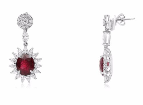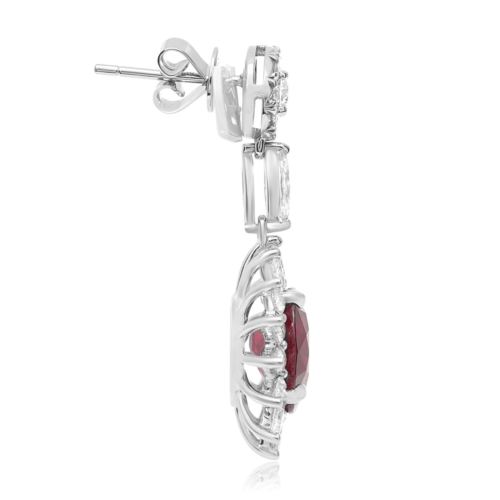 GIA CERTIFIED 9.89CT DIAMOND & AAA RUBY 18KT WHITE GOLD FLOWER HANGING EARRINGS