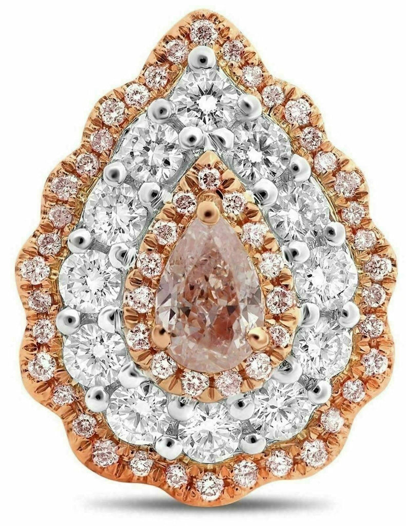 GIA CERTIFIED LARGE 18KT WHITE AND ROSE GOLD CLIP ON EARRINGS. 3D CLASSIC PEAR SHAPE TEAR DROP DOUBLE HALO DESIGN. WHITE DIAMONDS ARE F/G COLOR, VSSI CLARITY 1.07 CARATS. PINK DIAMOND ARE 1.0 CARATS. MEASURES 17mm X 13mm. WRITTEN APPRAISAL AVAILABLE. COMES IN A PRESENTABLE GIFT BOX
