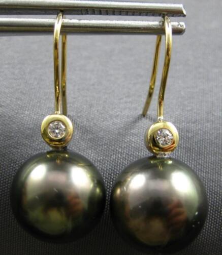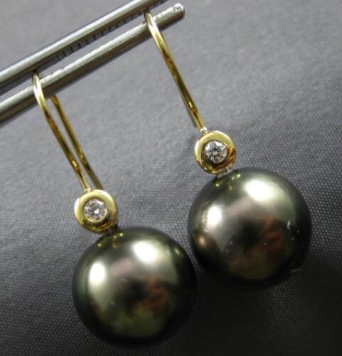 LARGE .06CT DIAMOND & AAA TAHITIAN PEARL 18KT YELLOW GOLD 3D SOLITAIRE EARRINGS