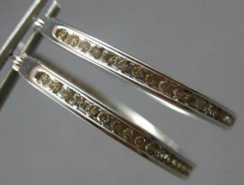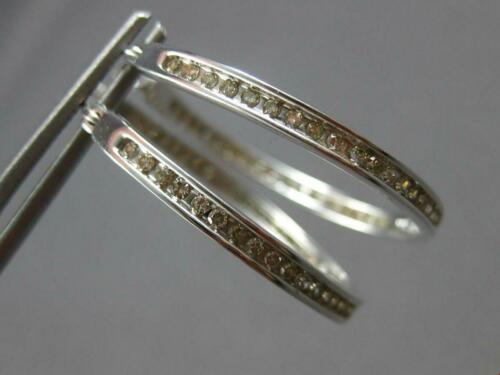 LARGE 1.05CT DIAMOND 14KT WHITE GOLD 3D INSIDE OUT CHANNEL HOOP HANGING EARRINGS