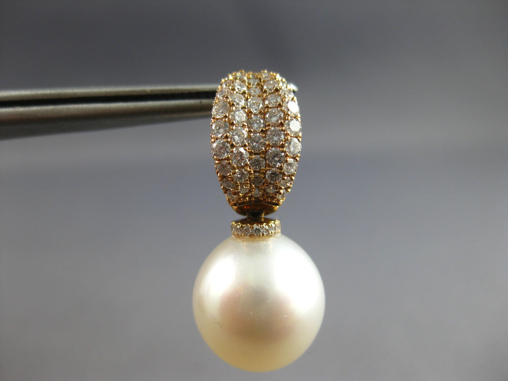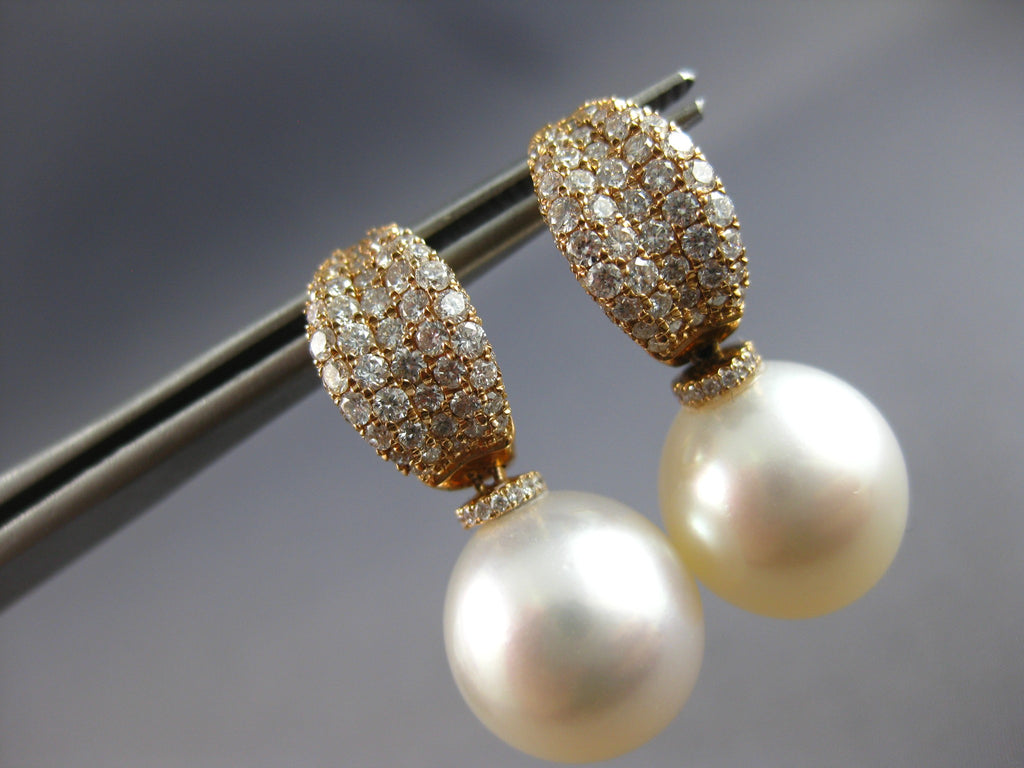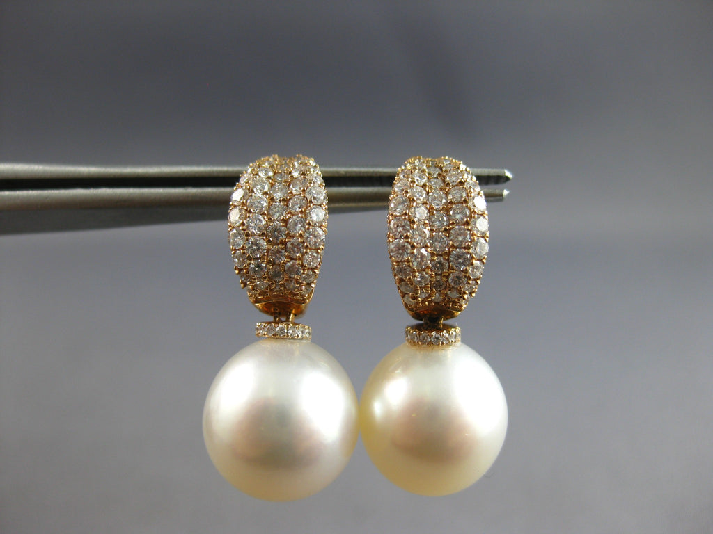 LARGE 18KT ROSE GOLD HUGGIE LEVERBACK HANGING EARRINGS. 3D MULTI ROW DESIGN. DIAMONDS ARE F/G COLOR, VSSI CLARITY 1.12 CARATS. FEATURES AAA SOUTH SEA PEARLS. PEARLS MEASURES 13mm X 12mm. EARRINGS MEASURE 27mm X 12mm. WRITTEN APPRAISAL AVAILABLE. COMES IN A PRESENTABLE GIFT BOX.