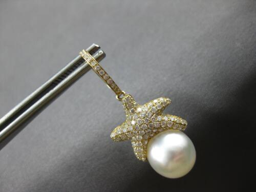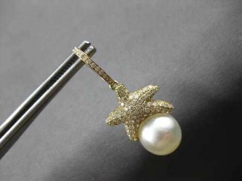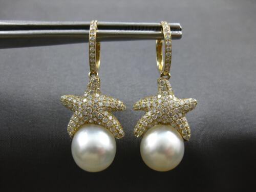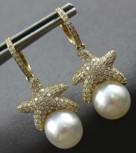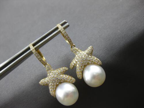 LARGE 1.14CT DIAMOND & AAA SOUTH SEA PEARL 14K YELLOW GOLD STARFISH FUN EARRINGS