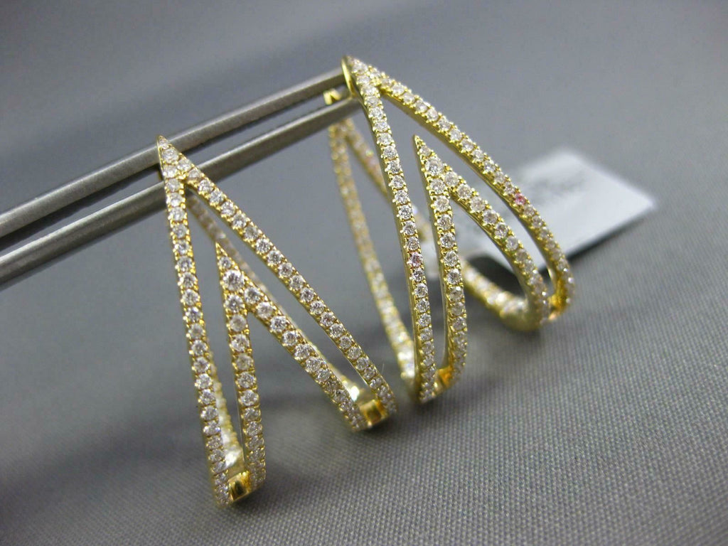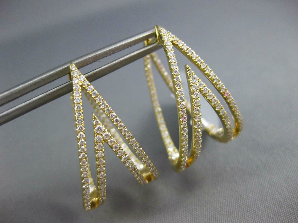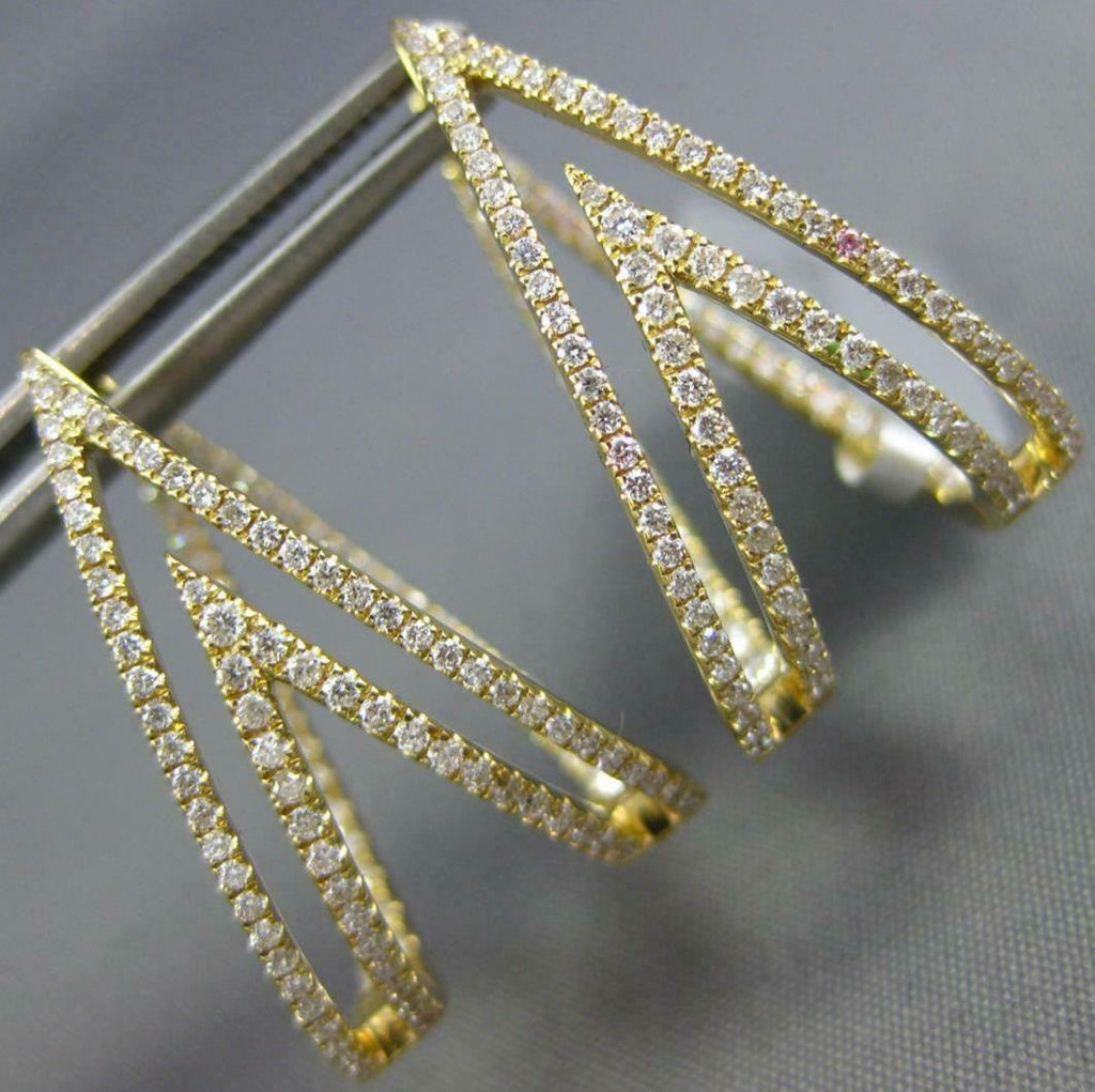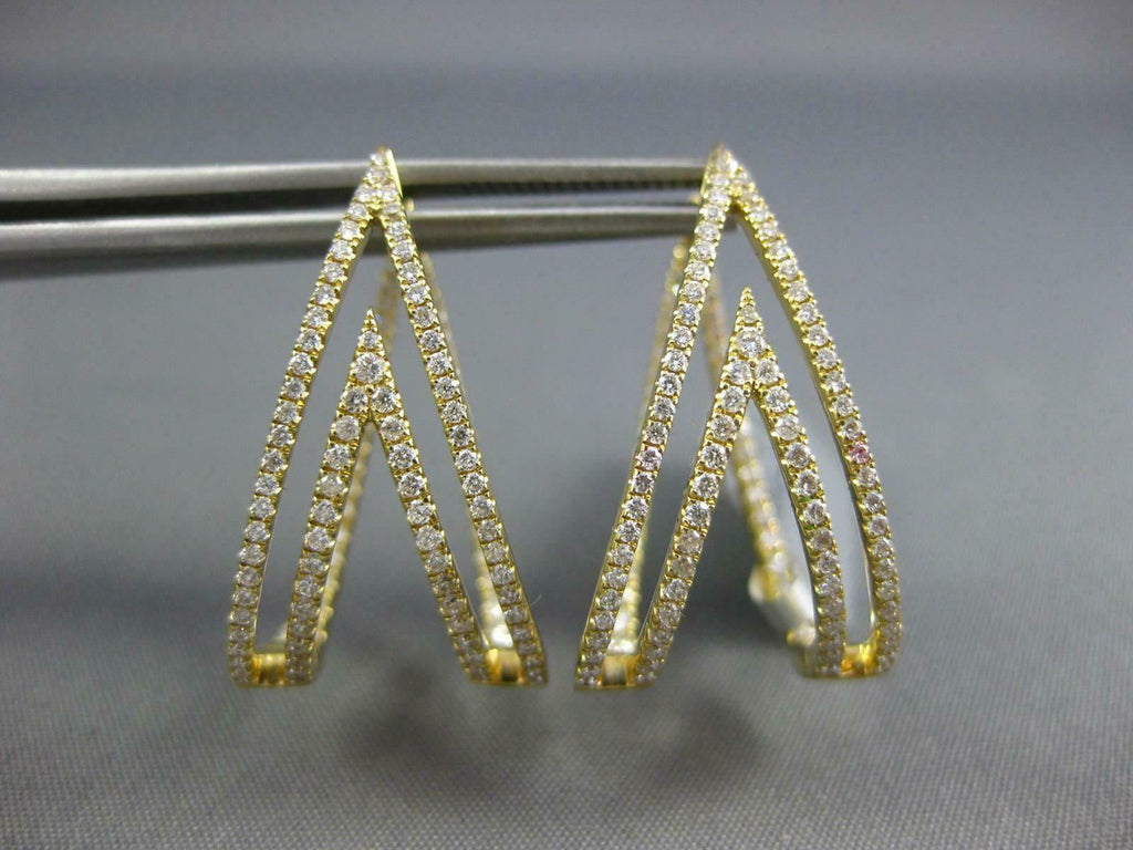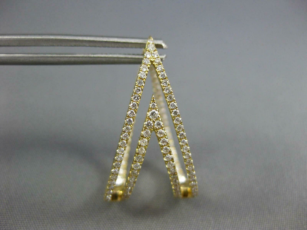 LARGE 1.15CT DIAMOND 18K YELLOW GOLD DOUBLE V INSIDE OUT HUGGIE HANGING EARRINGS