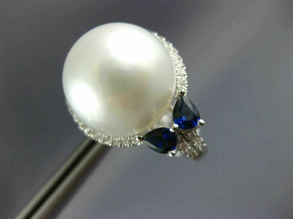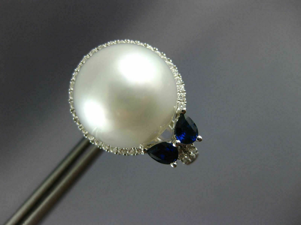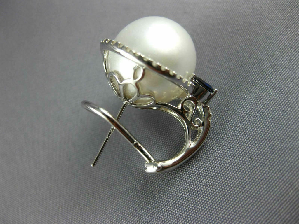 LARGE 1.19CT DIAMOND & AAA SAPPHIRE & SOUTH SEA PEARL 18KT WHITE GOLD EARRINGS