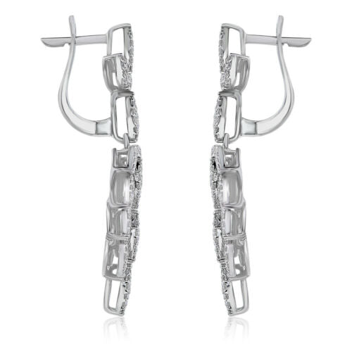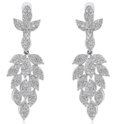 LARGE 1.21CT DIAMOND 18KT WHITE GOLD 3D MULTI LEAF CHANDELIER HANGING EARRINGS