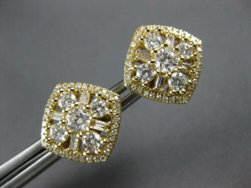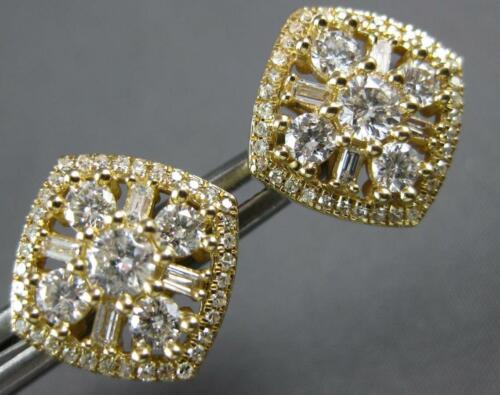 LARGE 14KT YELLOW GOLD STUD EARRINGS. 3D FLOWER SQUARE DESIGN. DIAMONDS ARE F/G COLOR, VSSI CLARITY. ROUND DIAMONDS ARE 1.24 CARATS. BAGUETTE DIAMONDS ARE .12 CARATS. MEASURES 11.5mm WIDE. WRITTEN APPRAISAL AVAILABLE. COMES IN A PRESENTABLE GIFT BOX.
