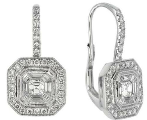 LARGE 1.39CT DIAMOND 14K WHITE GOLD INVISIBLE OCTAGON LEVERBACK HANGING EARRINGS