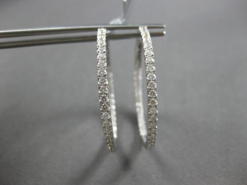 LARGE 1.41CT DIAMOND 18KT WHITE GOLD 3D ROUND INSIDE OUT HOOP HANGING EARRINGS