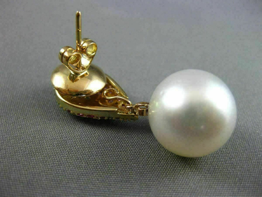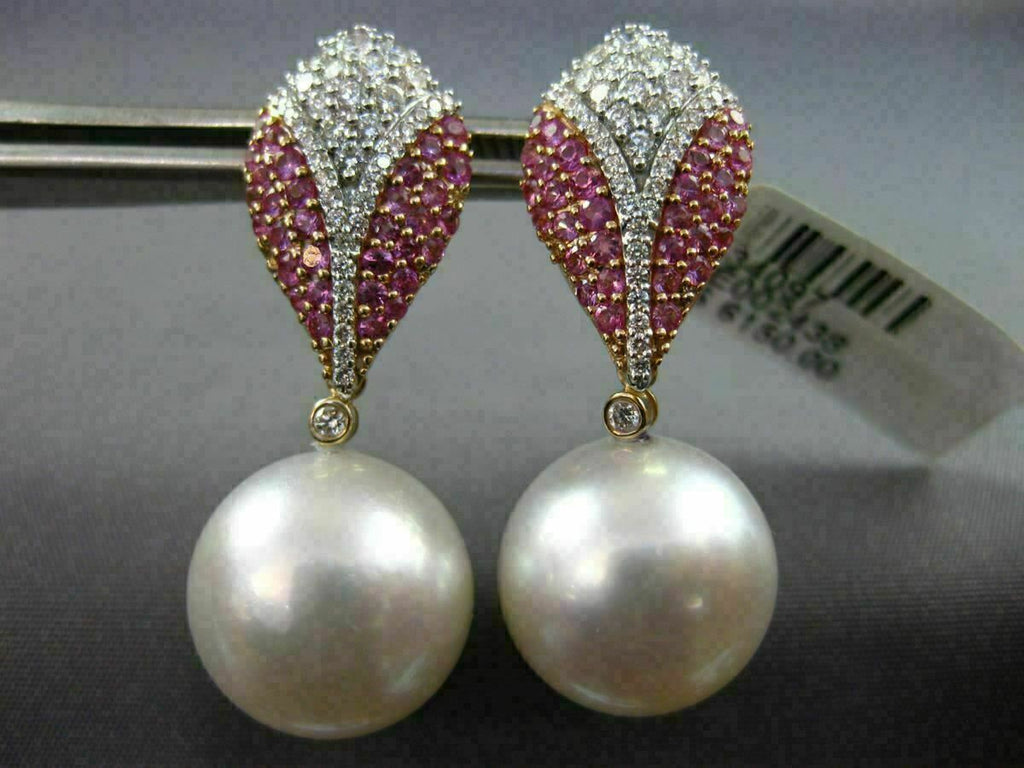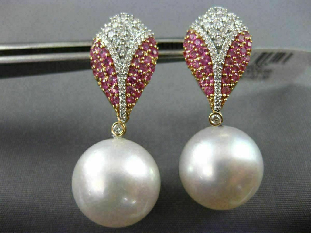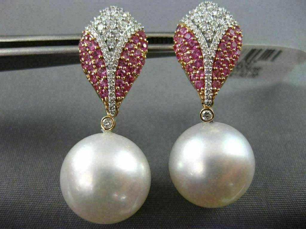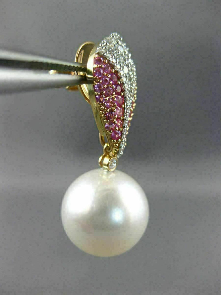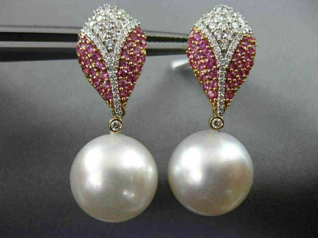 LARGE 1.46CT DIAMOND & PINK SAPPHIRE SOUTH SEA PEARL 14K WHITE GOLD 3D EARRINGS