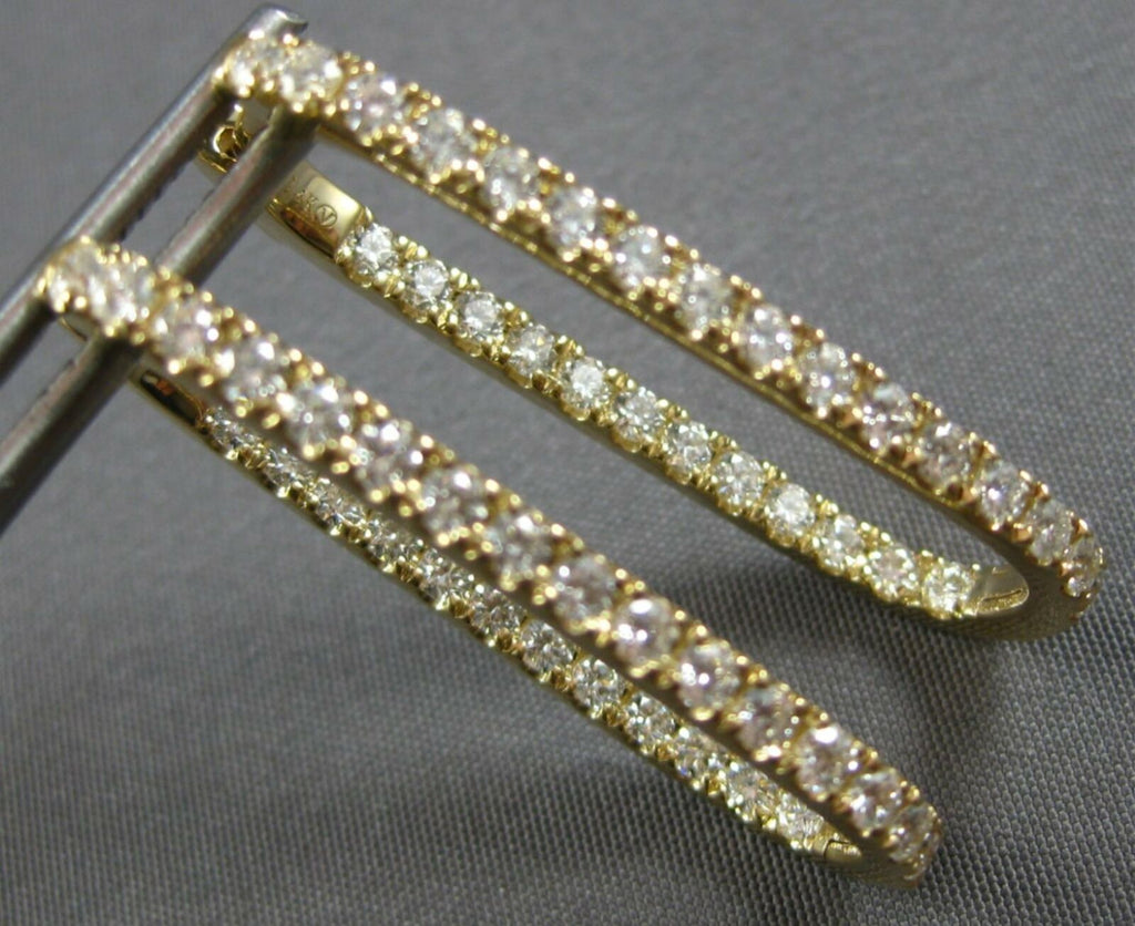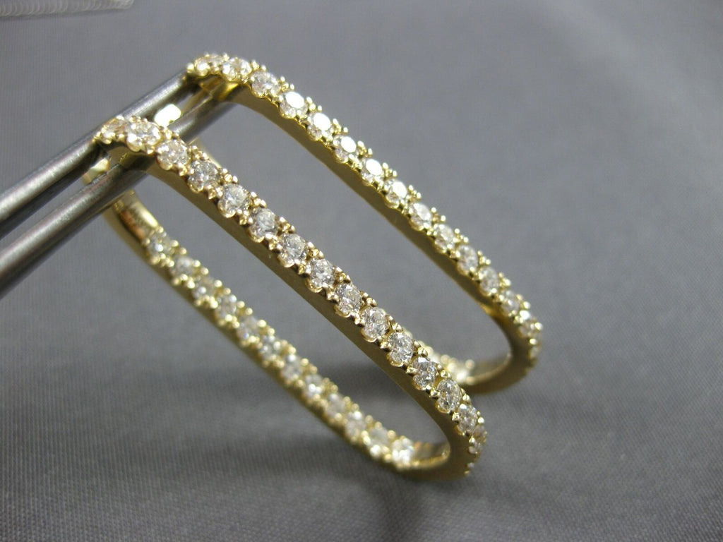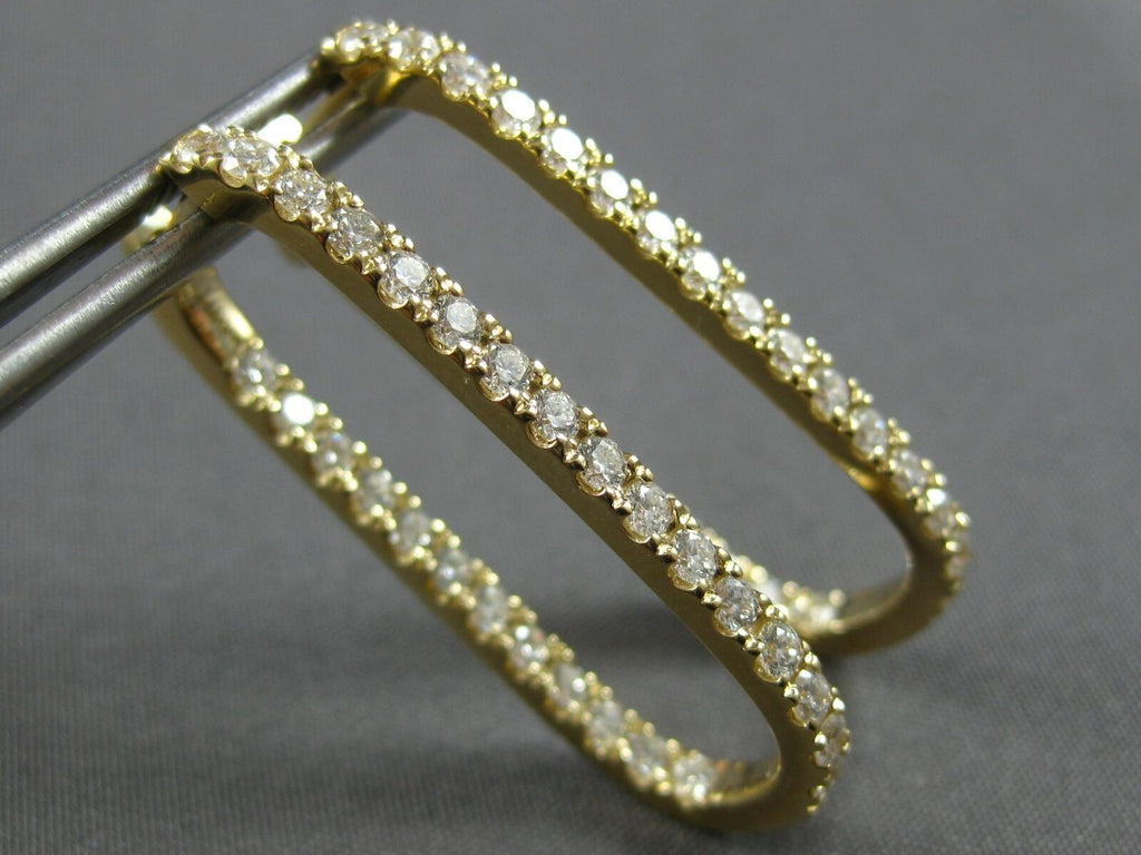 LARGE 14KT YELLOW GOLD HOOP HANGING EARRINGS. 3D RECTANGULAR INSIDE OUT DESIGN. DIAMONDS ARE F/G COLOR, VVS-VS CLARITY 1.52 CARATS. MEASURES 32MM X 2.5MM. WRITTEN APPRAISAL AVAILABLE. COMES IN A PRESENTABLE GIFT BOX.