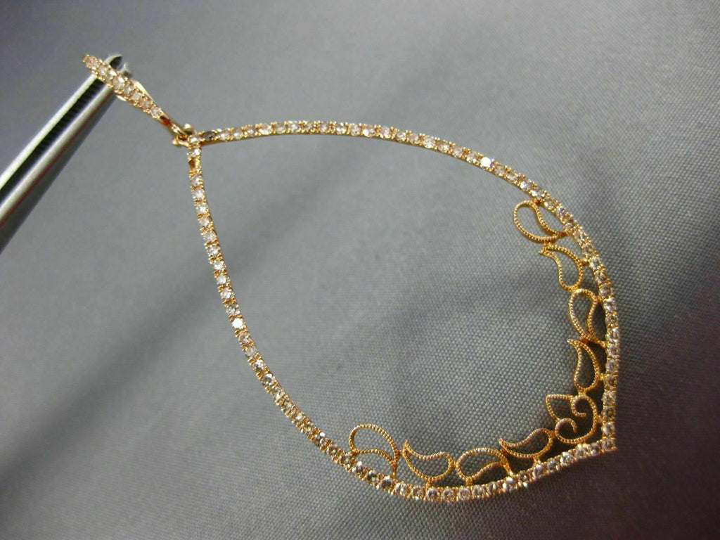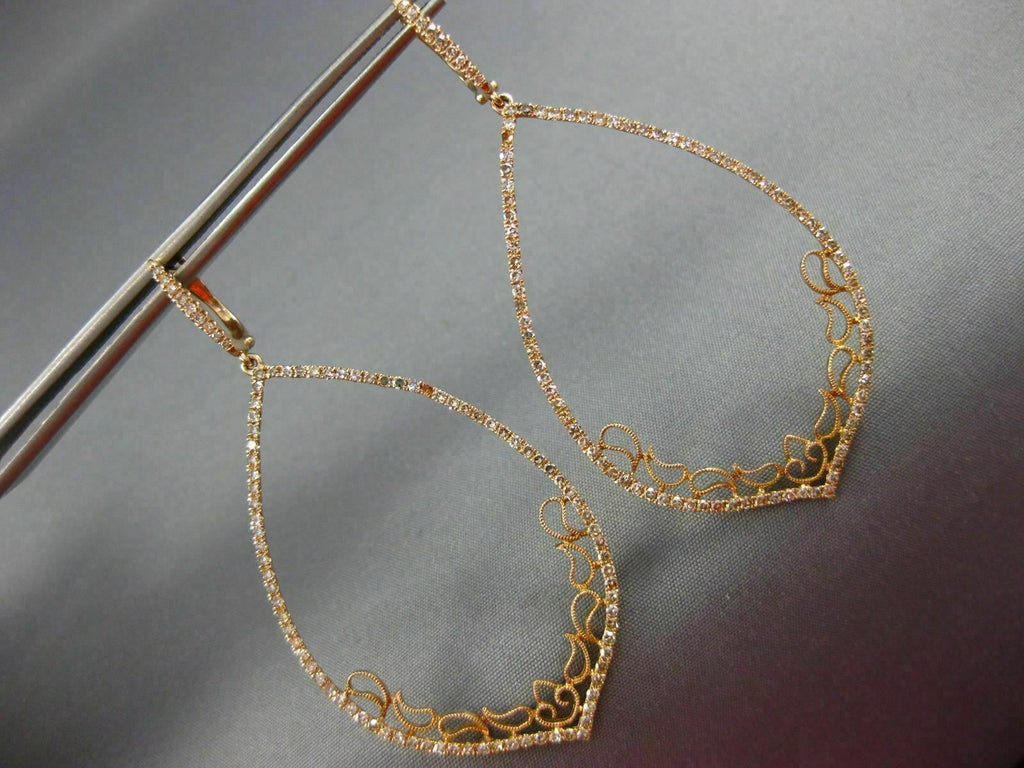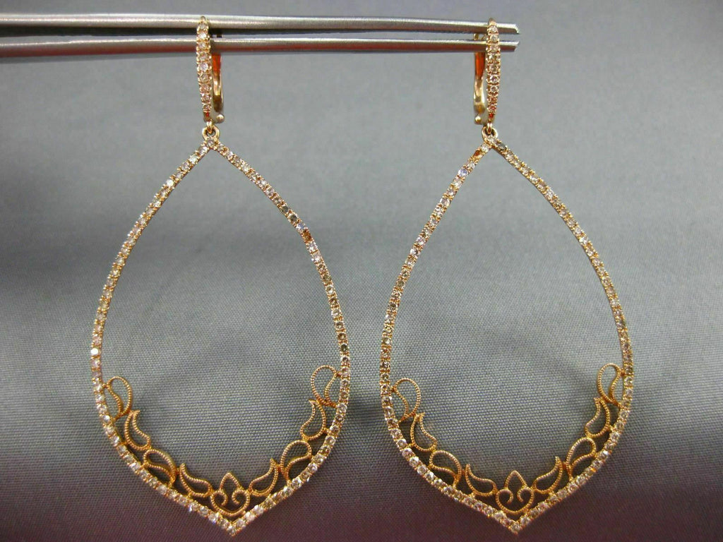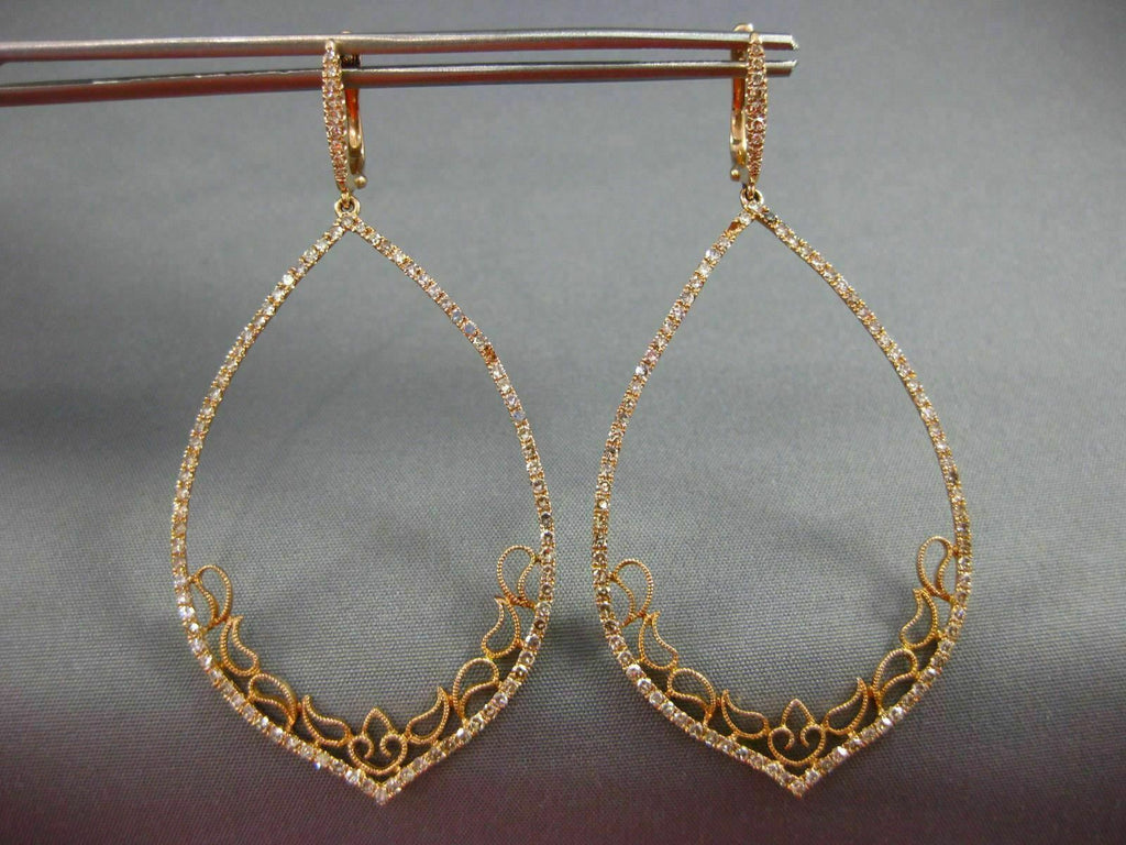 LARGE 1.52CT DIAMOND 18KT ROSE GOLD 3D OPEN FILIGREE TEAR DROP HANGING EARRINGS