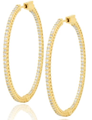 LARGE 18KT YELLOW GOLD HOOP HANGING EARRINGS. 3D CLASSIC SHARED PRONG INSIDE OUT OVAL DESIGN. ROUND DIAMONDS ARE G/H COLOR, VSSI CLARITY 1.50 CARATS. WRITTEN APPRAISAL AVAILABLE. COMES IN A PRESENTABLE GIFT BOX.